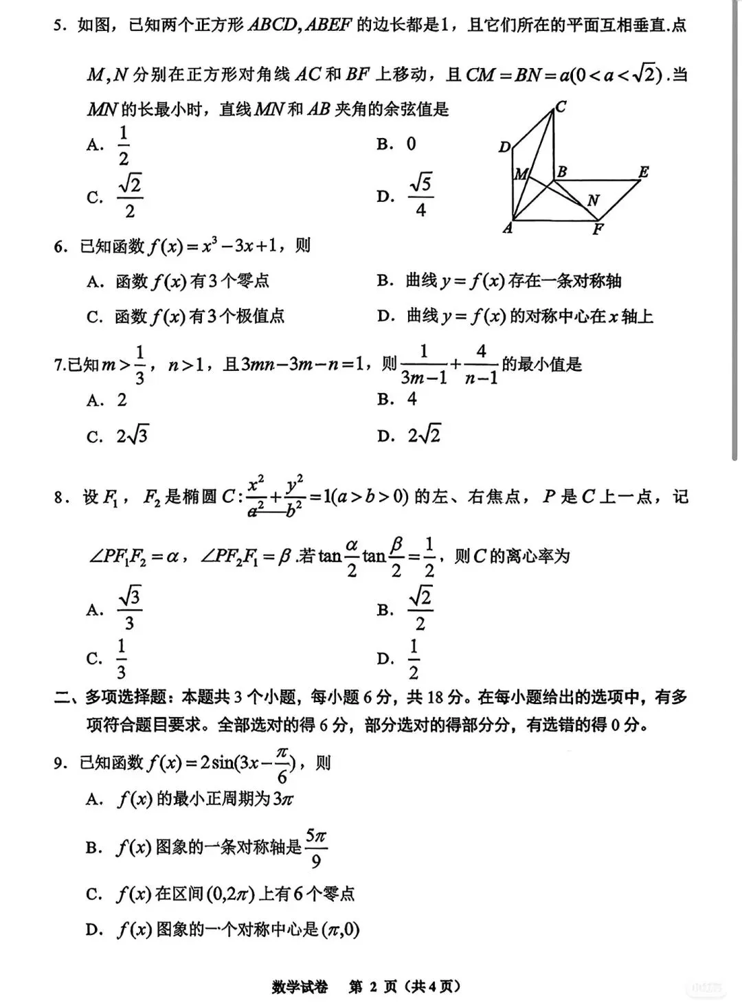 >贵阳市2026年4月高三适应性考试数学试卷+答案