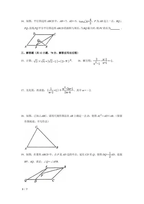 七下数学试卷:2025-2026学年武汉市七年级下学期3月学情质量检测数学试卷