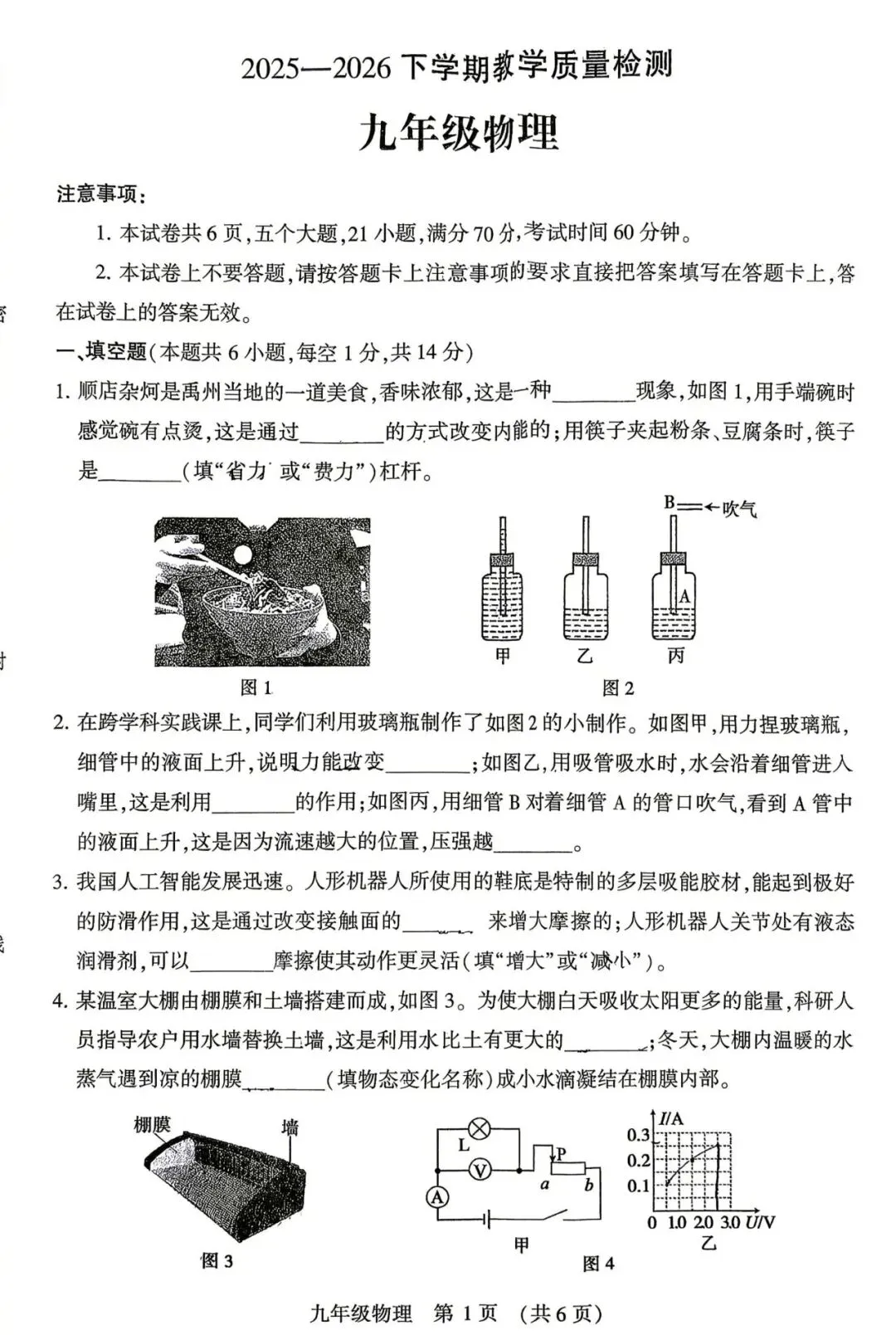 >【禹州市】2026年中考一模全科试卷及参考答案
