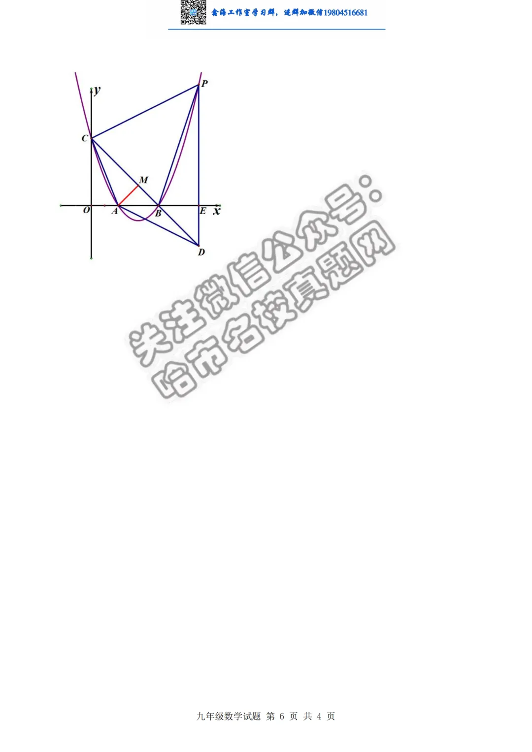 >2026哈尔滨呼兰区九年级下一模数学 试卷+答案
