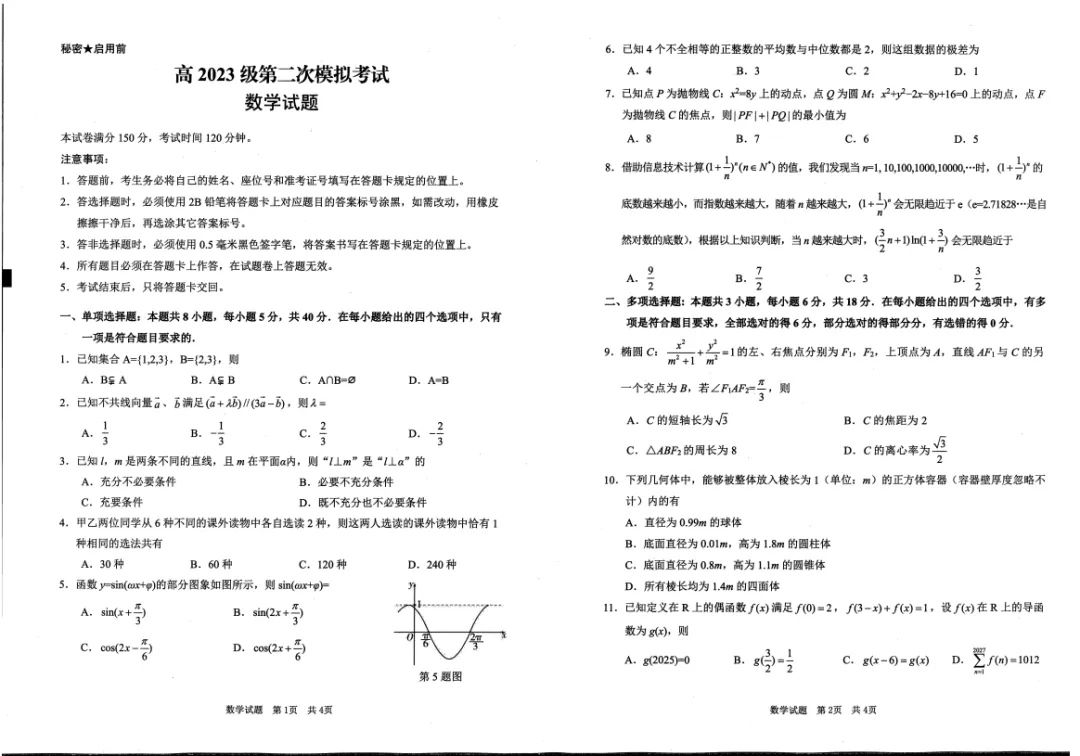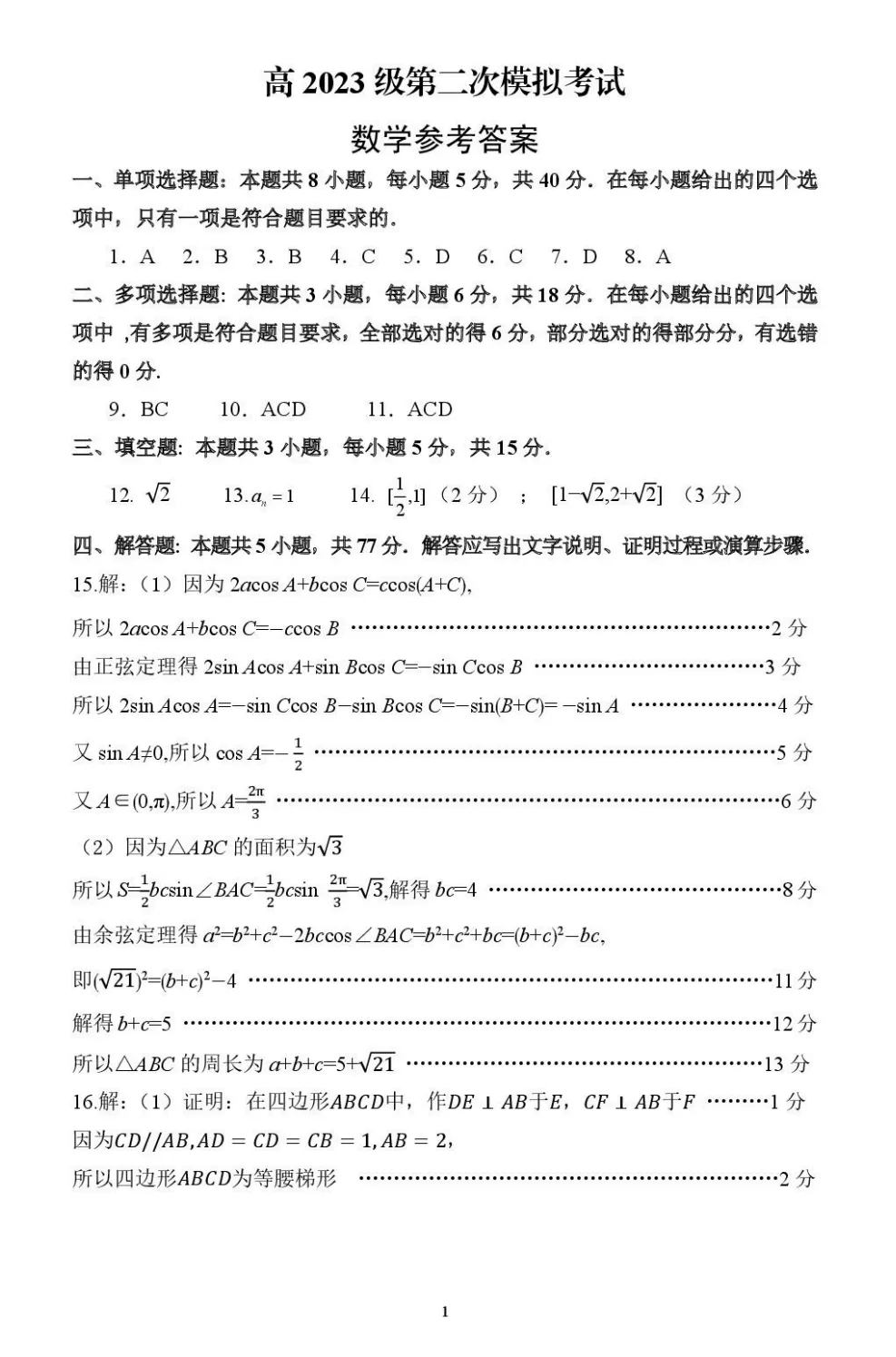 >【最新试卷】2026届四川广安二模数学试题+答案
