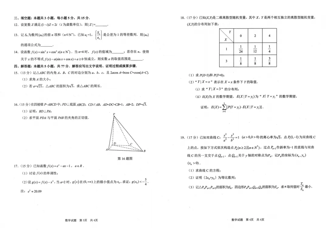 【高中数学试卷】2026届贵州贵阳高三适应性考试数学试卷+答案