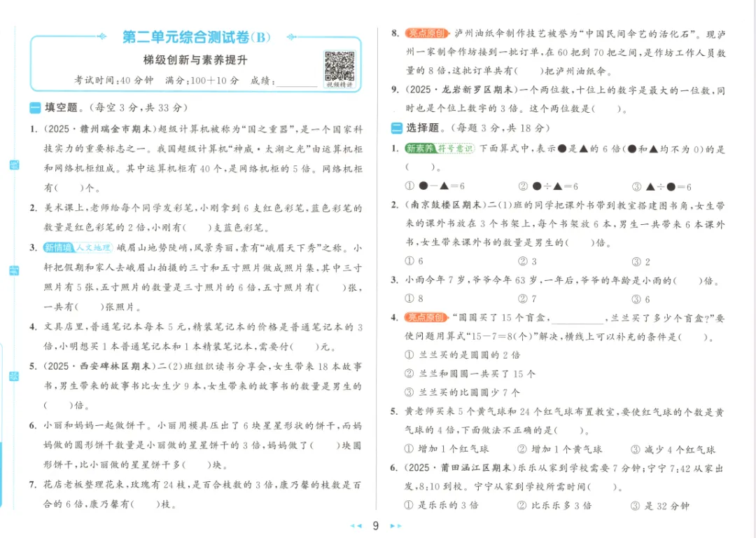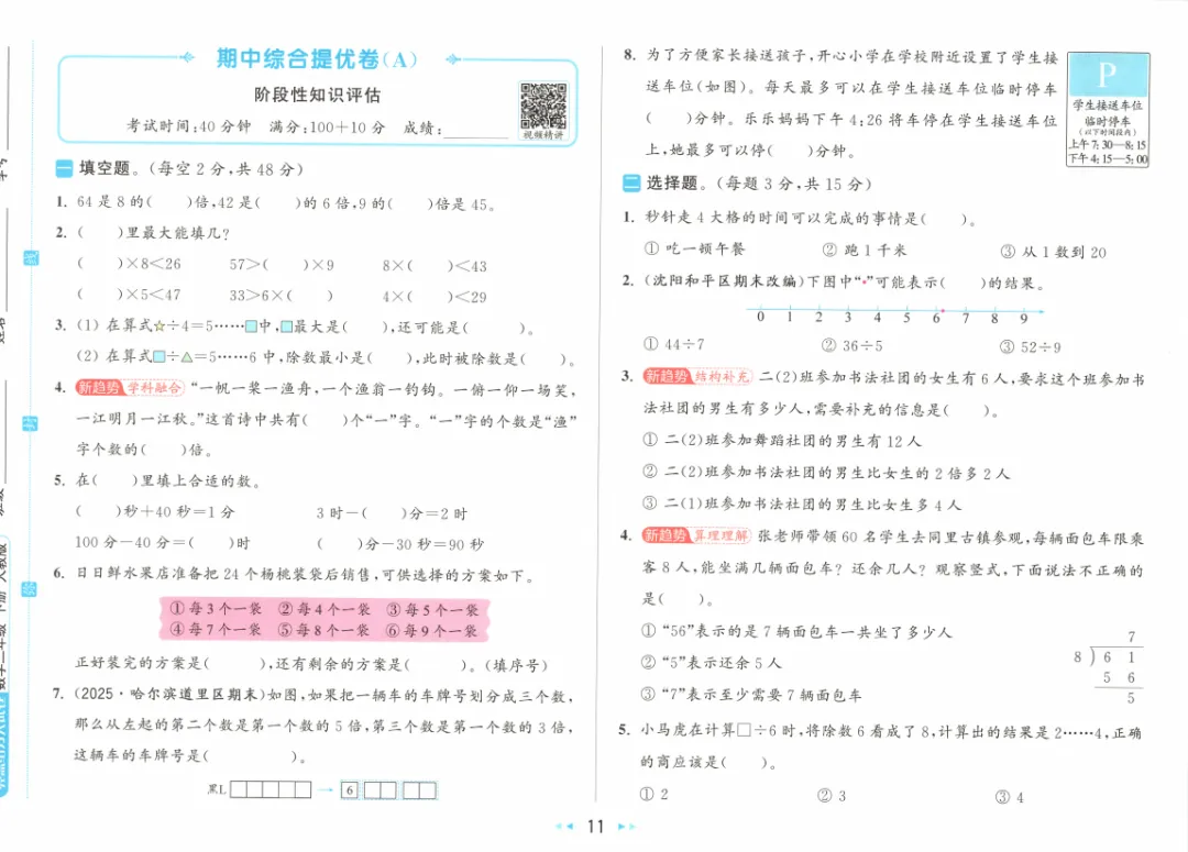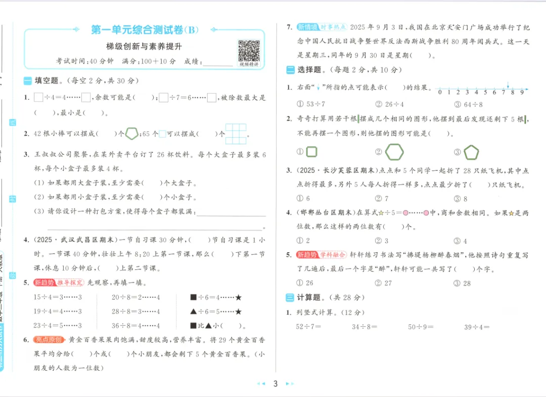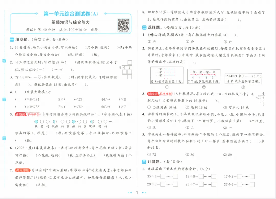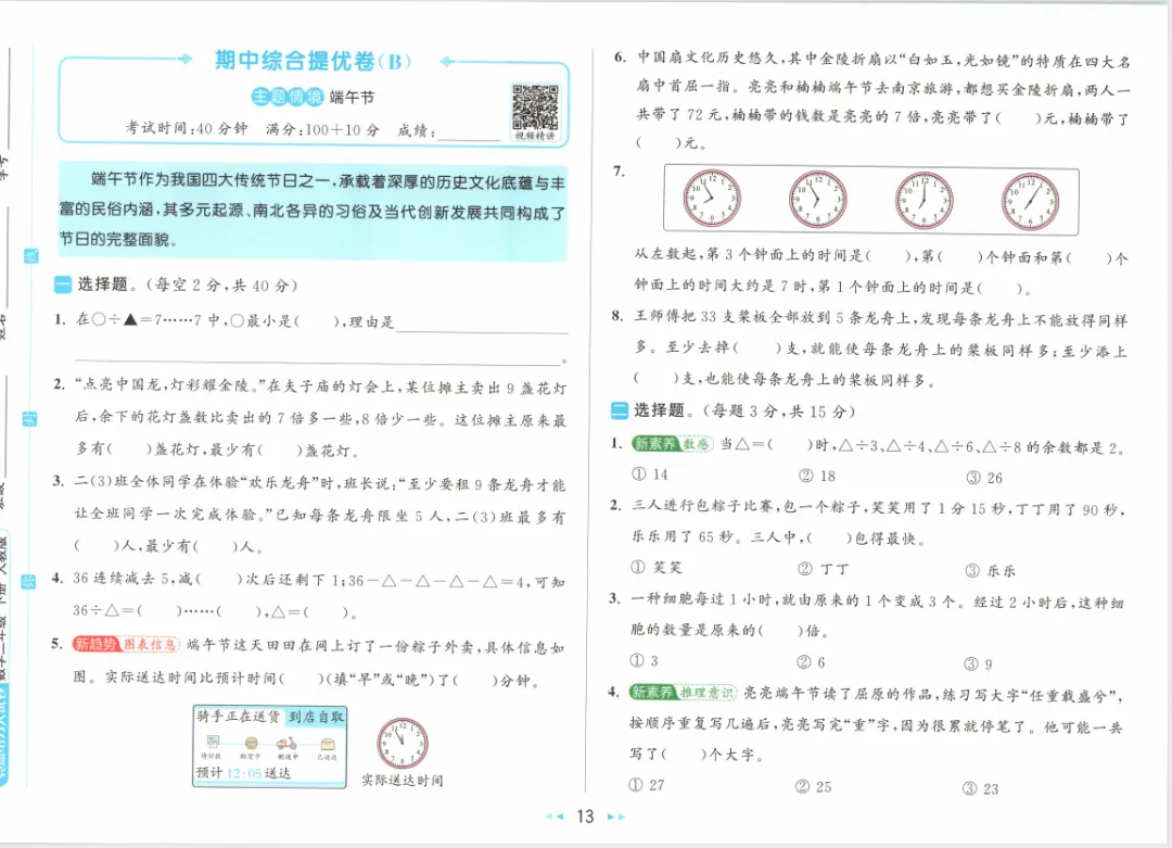 >人教版小学数学大试卷二下(含答案)1