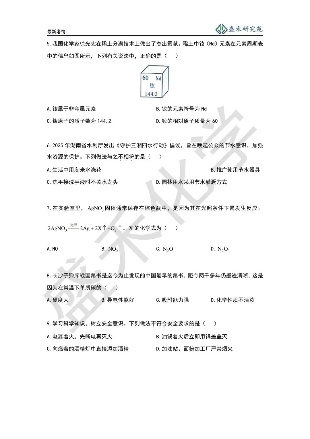 第8题 结合长沙子弹库帛书,考查碳单质的化学性质,体现传统文化与化学知识的融合;