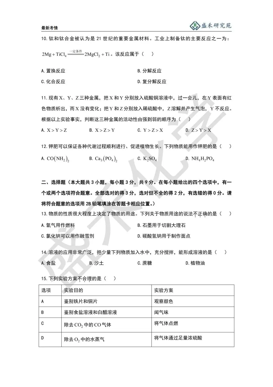 第12题 考查化肥的分类,强调化学知识在农业生产中的应用。