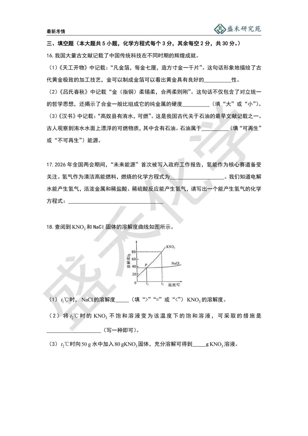 第16题 以《天工开物》《吕氏春秋》《汉书》等古代典籍为背景,考查金属的延展性、合金的硬度、能源的分类,体现学科与传统文化融合;