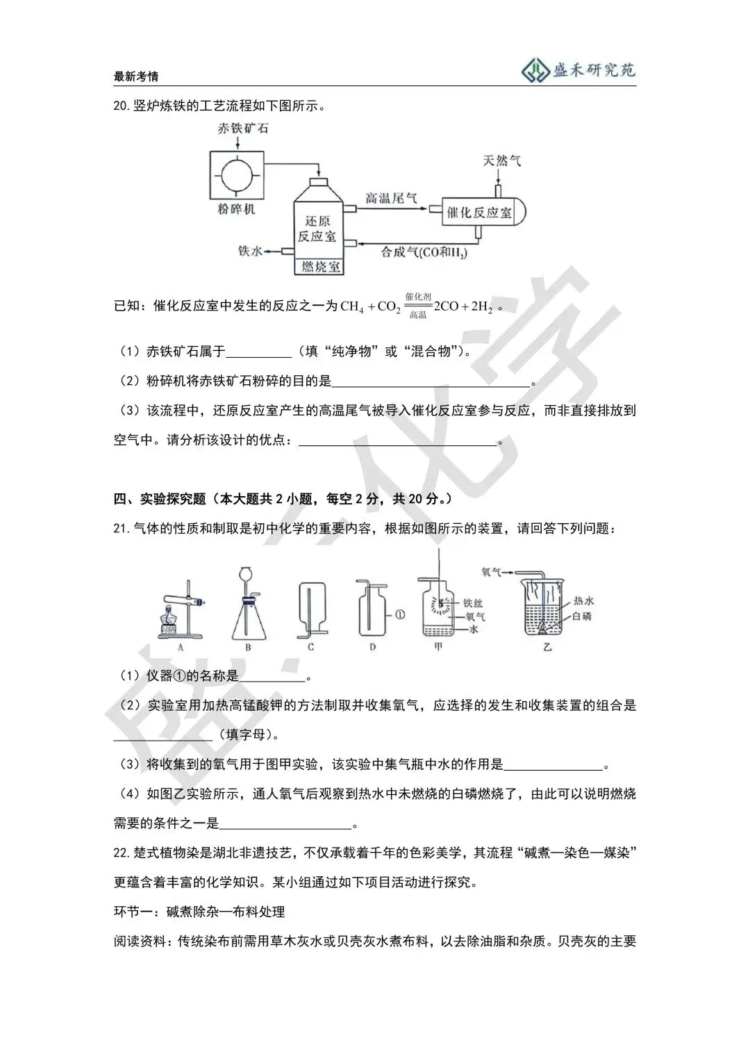 第20题 以坚炉炼铁工艺流程为载体,考查混合物判断、粉碎目的、尾气循环利用的意义,体现工艺流程分析能力。
