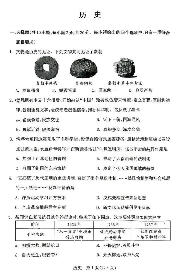 >2026年3月内蒙古中考一模试卷:道法、历史(含答案)
