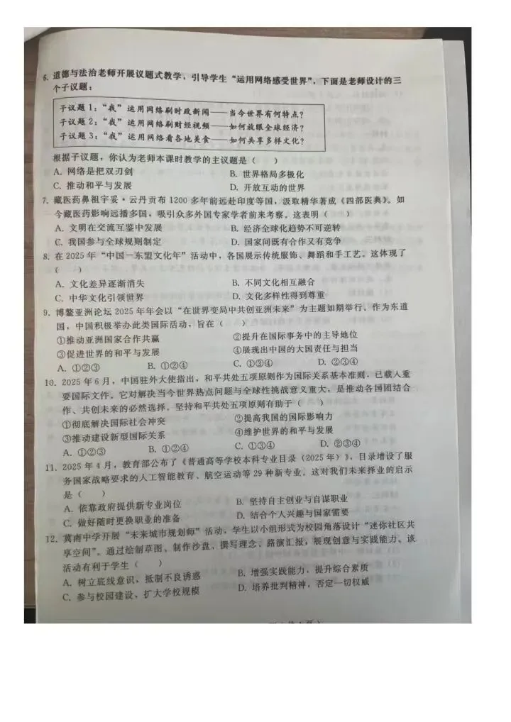 (2)我国是全球发展的贡献者;为世界经济发展注入活力;促进了沿线国家经济发展。(4分)(评分说明:每点2分,答出2点且言之有理即可,共4分)