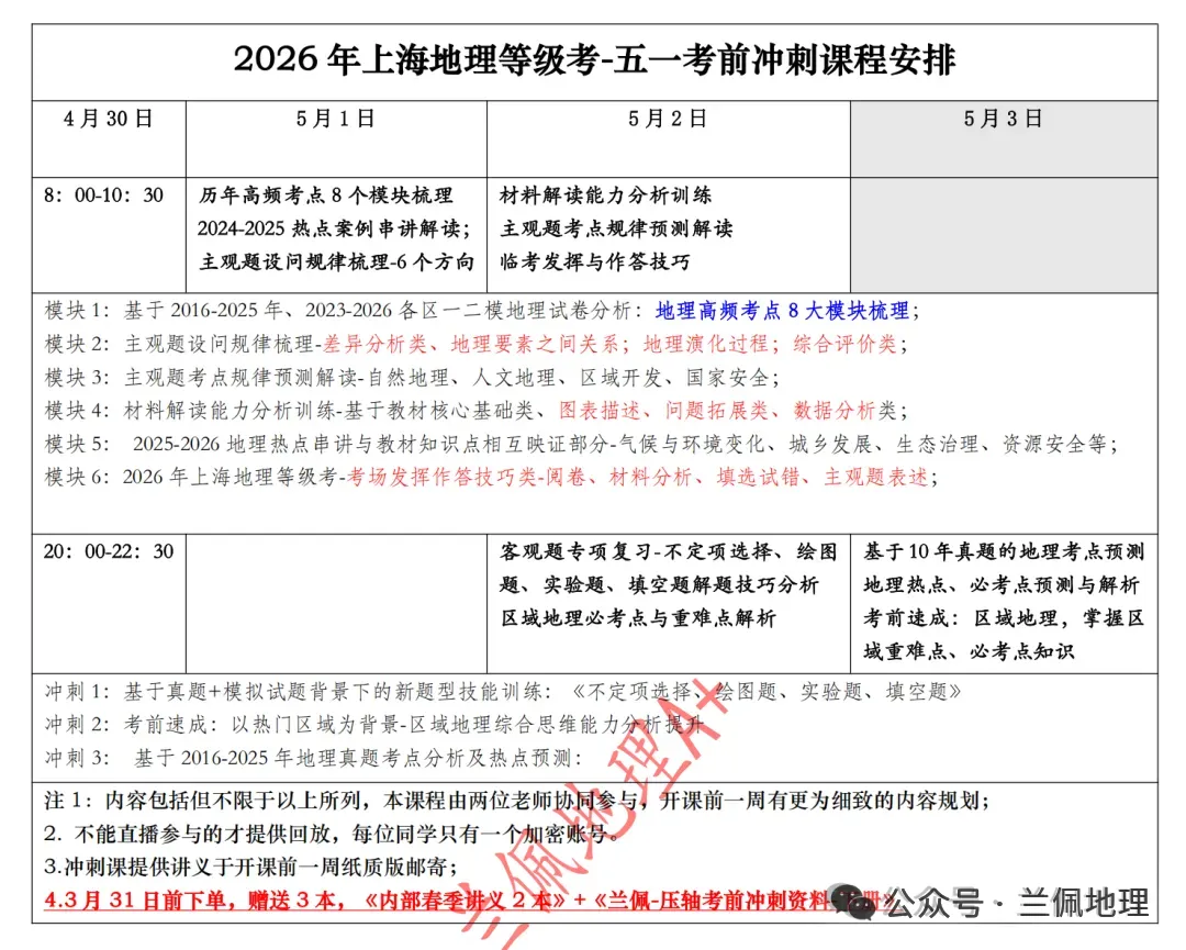 上海地理等级考仅剩39天,我们上架了20节《考前一小时》1v1精品课程