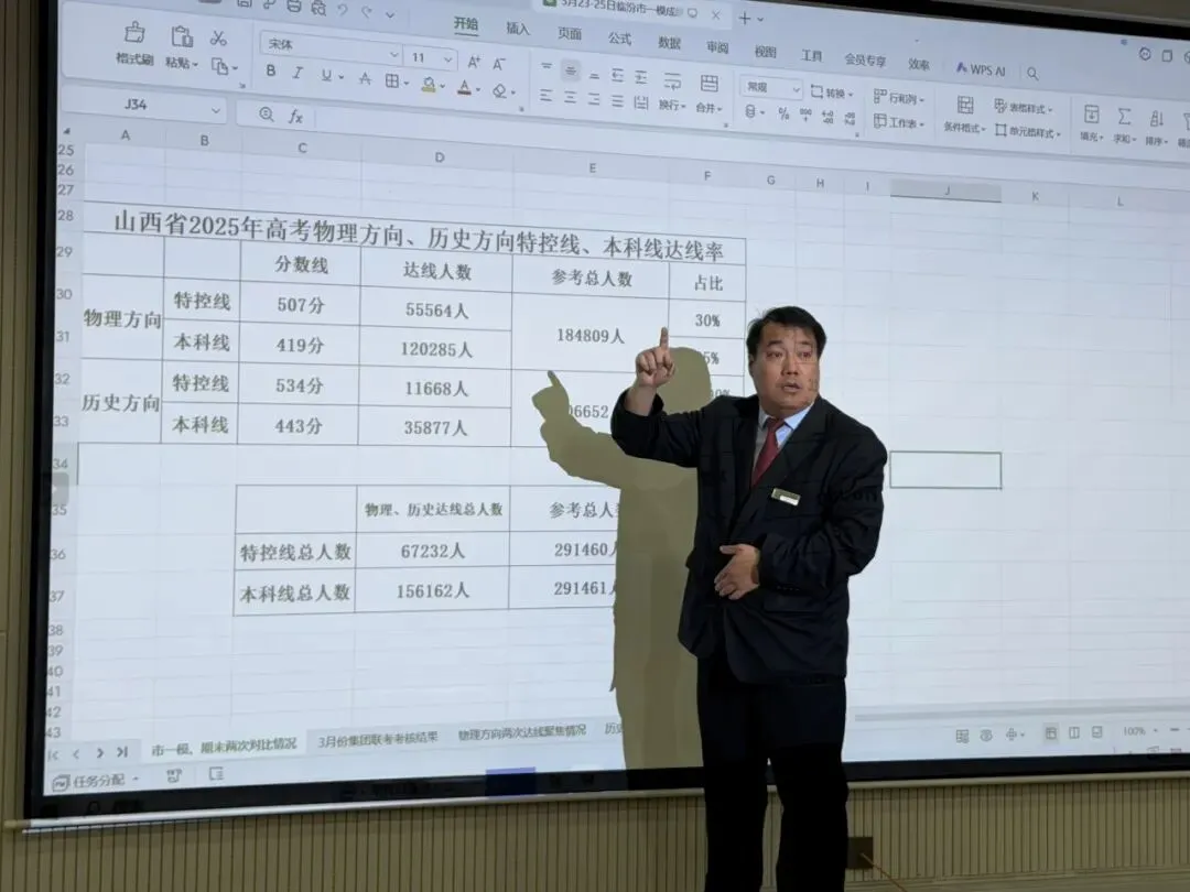 会议第一项,高复部副校长吕晓波首先针对考试总成绩、特控线本科线达线人数、特优生、临界生做了总分析,而且还按科目、分层次、分类别进行了详细的数据比对,肯定了各科老师在过去的时间付出的努力及取得的成绩,也指出学生在考试过程中所暴露的问题,并提出了相应的解决措施。