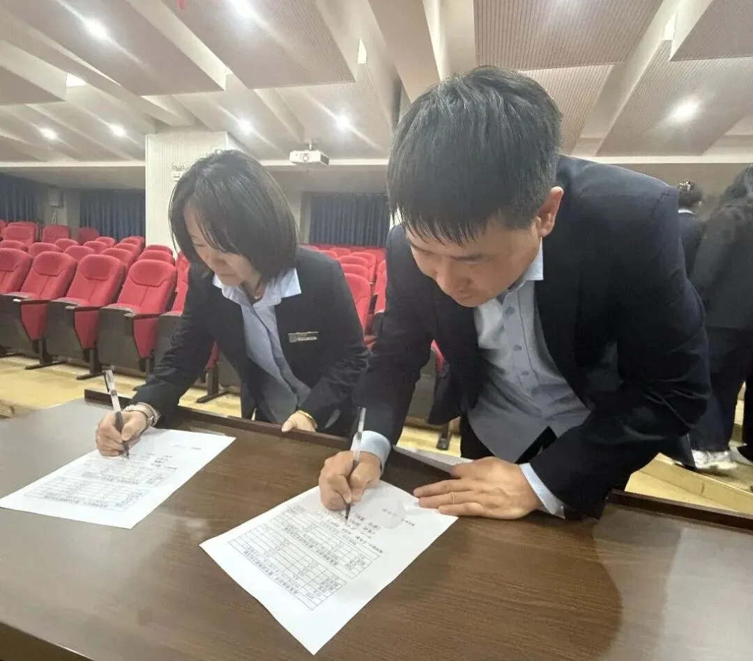 会议第四项,各班主任及代课教师签订了各班级的任务书。每一笔都力透纸背,每一个名字都饱含深情。这份任务书,不仅是名字的集合,更是责任的汇聚,是使命的传承,是全体教师对高考许下的庄严承诺。