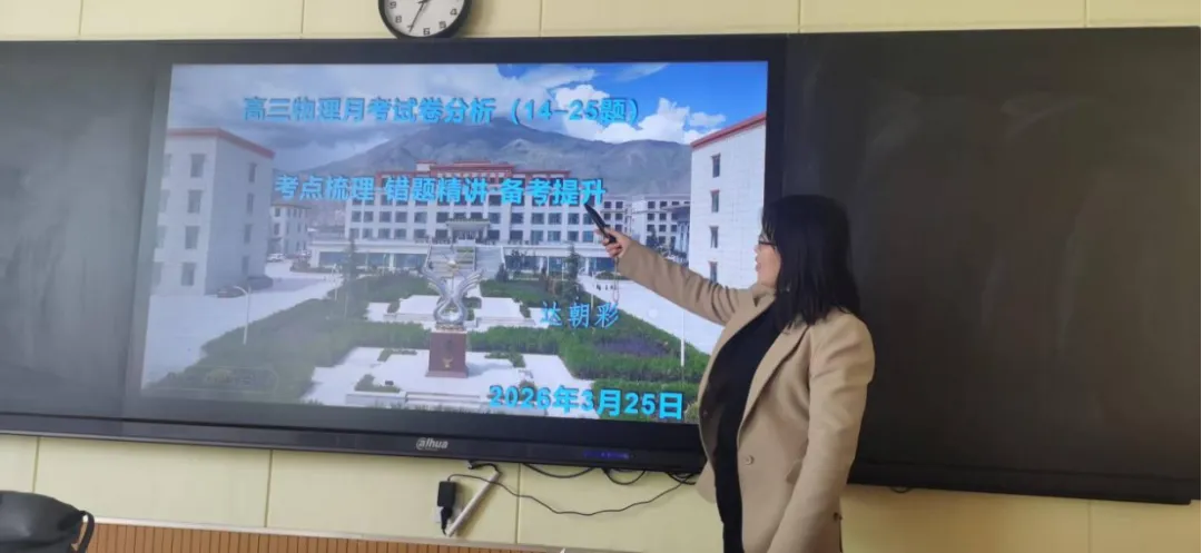 为精准把握高三物理复习备考方向,深入剖析月考试卷暴露的教学与学生学习问题,优化复习策略,提升高三物理备考效率,近日,拉萨市北京中学物理组开展专题教研活动。本次活动特邀达朝彩老师开展题为《高三月考试卷分析及高考复习建议》的专题讲座,物理组全体教师齐聚一堂,共同参与学习研讨,为高三物理复习备考凝心聚力。