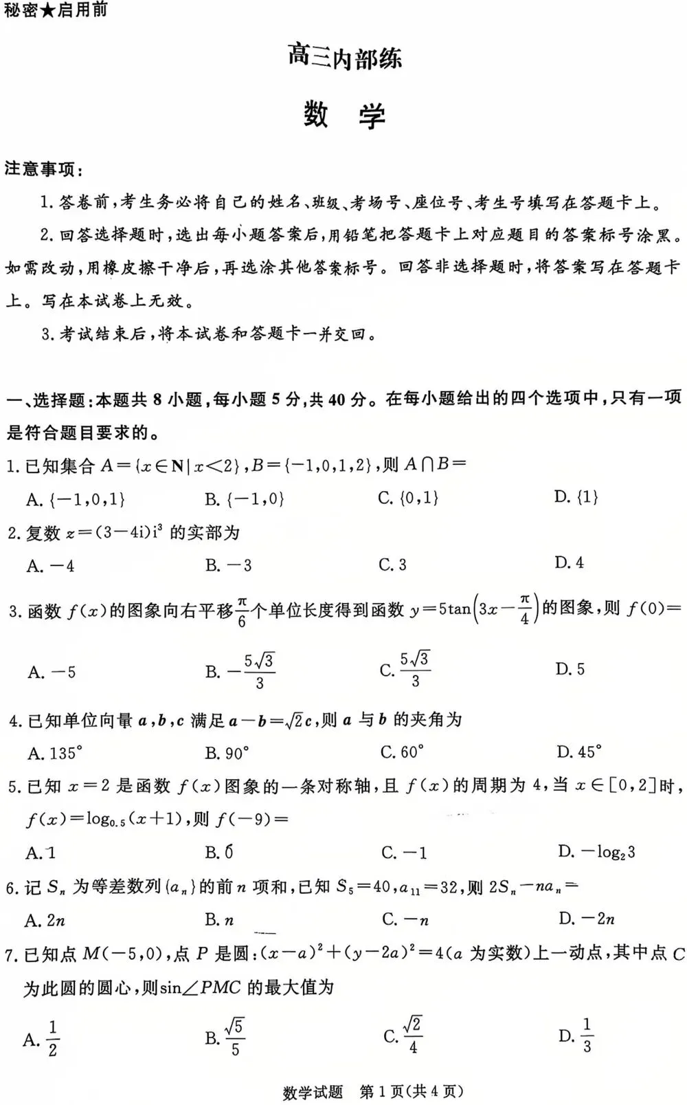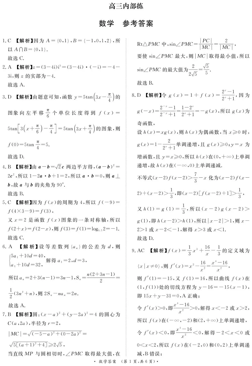 >2026青桐鸣联考高考数学试卷+答案解析(可打印)
