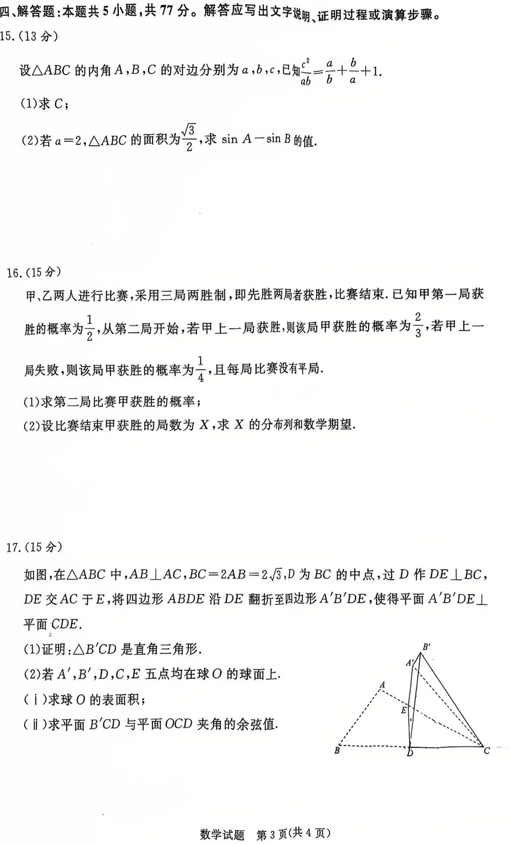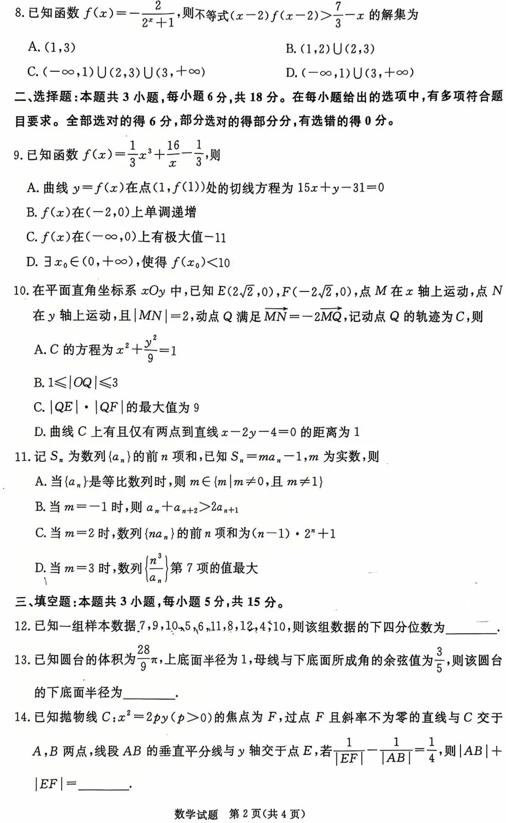 必刷卷推荐:福建厦门市高三二检数学试卷及逐题解析(2026.4)
