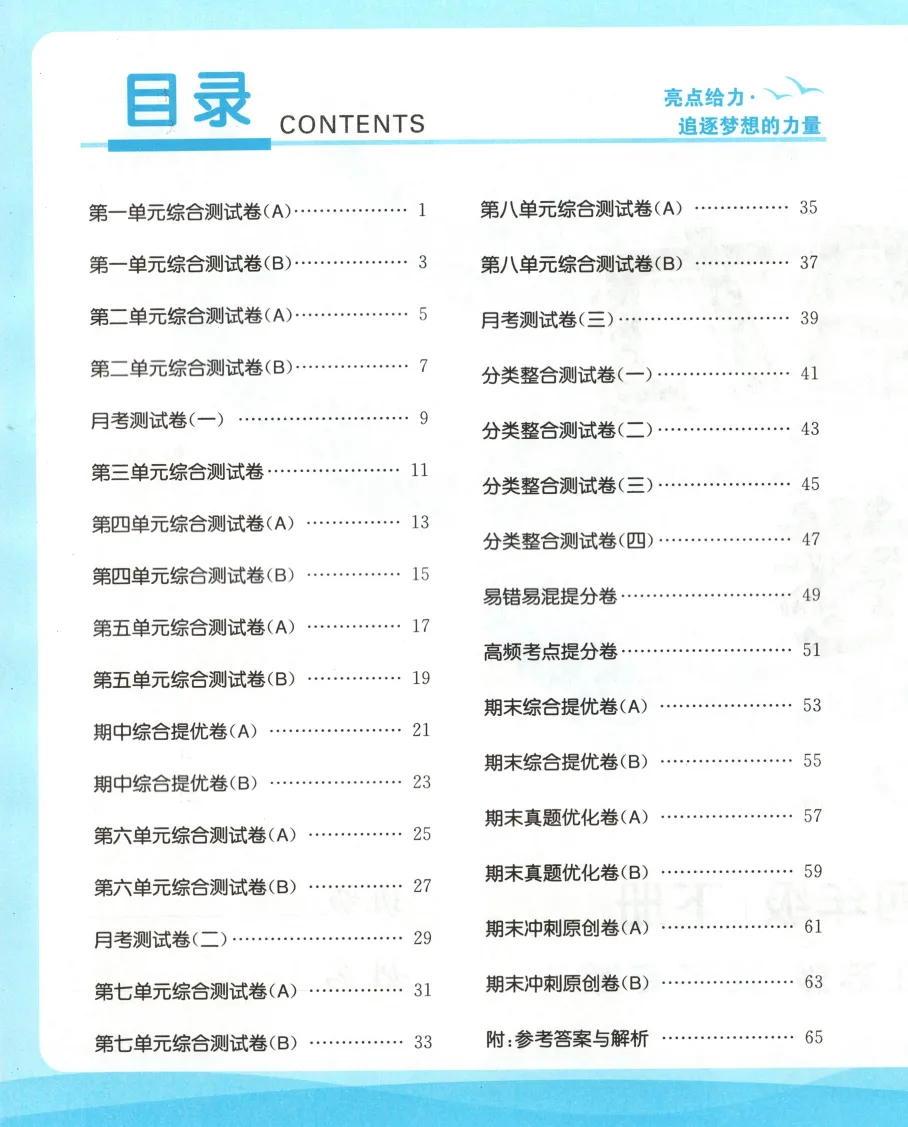 再加上月考卷、期中期末卷、分类整合卷(计算专练+应用题专练+几何专练),从单元检测到专项突破再到综合模拟,层层递进,精准扫清知识盲区。