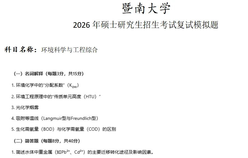 当前位置:首页>考研真题>暨南大学环境科学与工程综合考研复试真题模拟