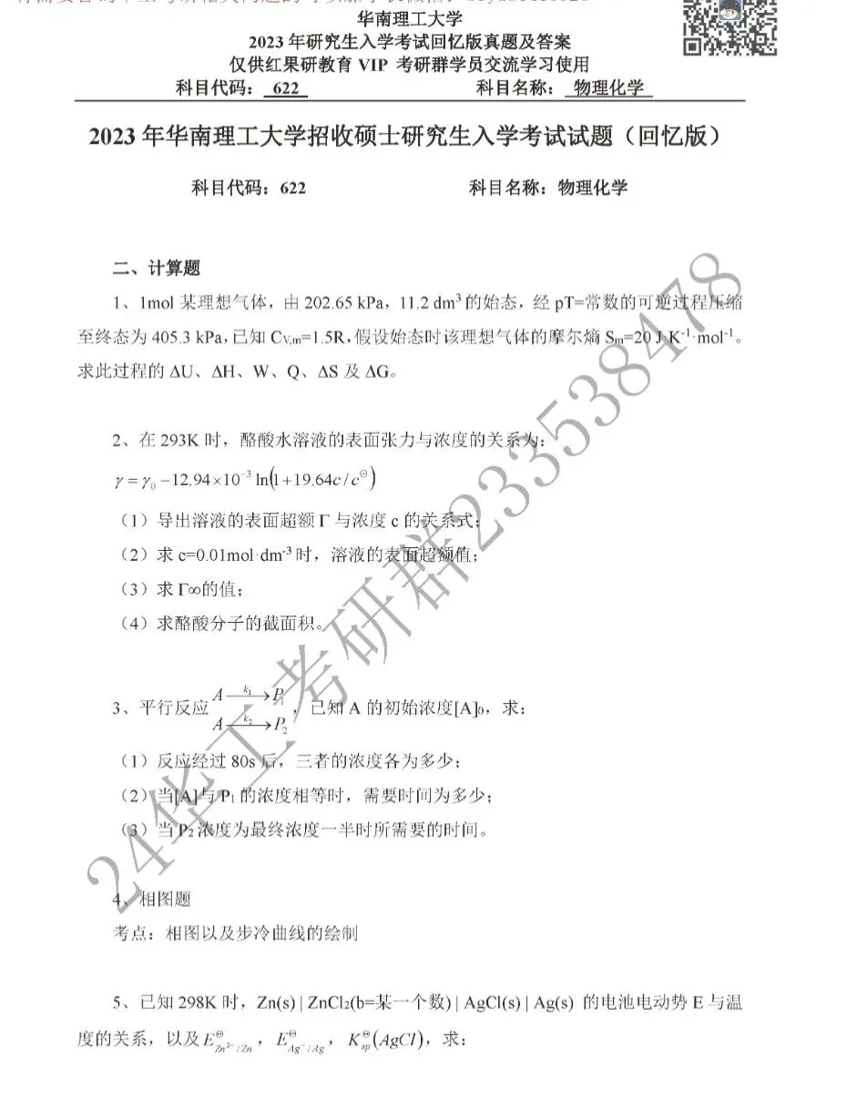 >华南理工大学00-23物理化学考研真题
