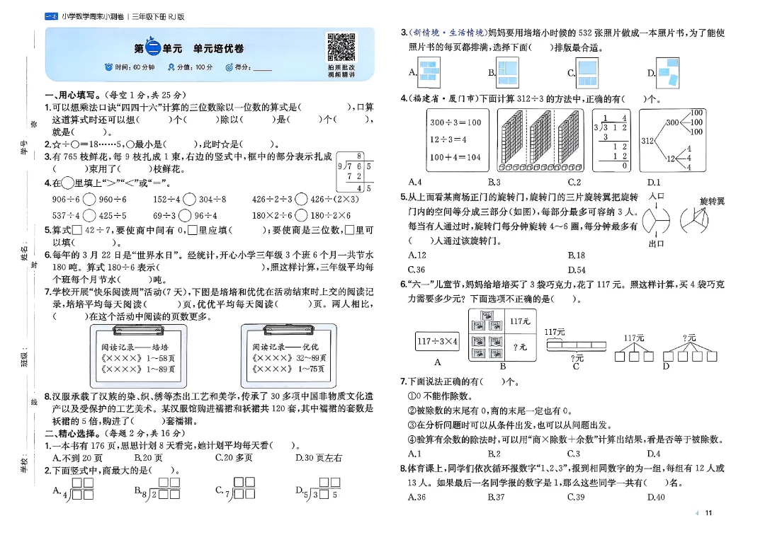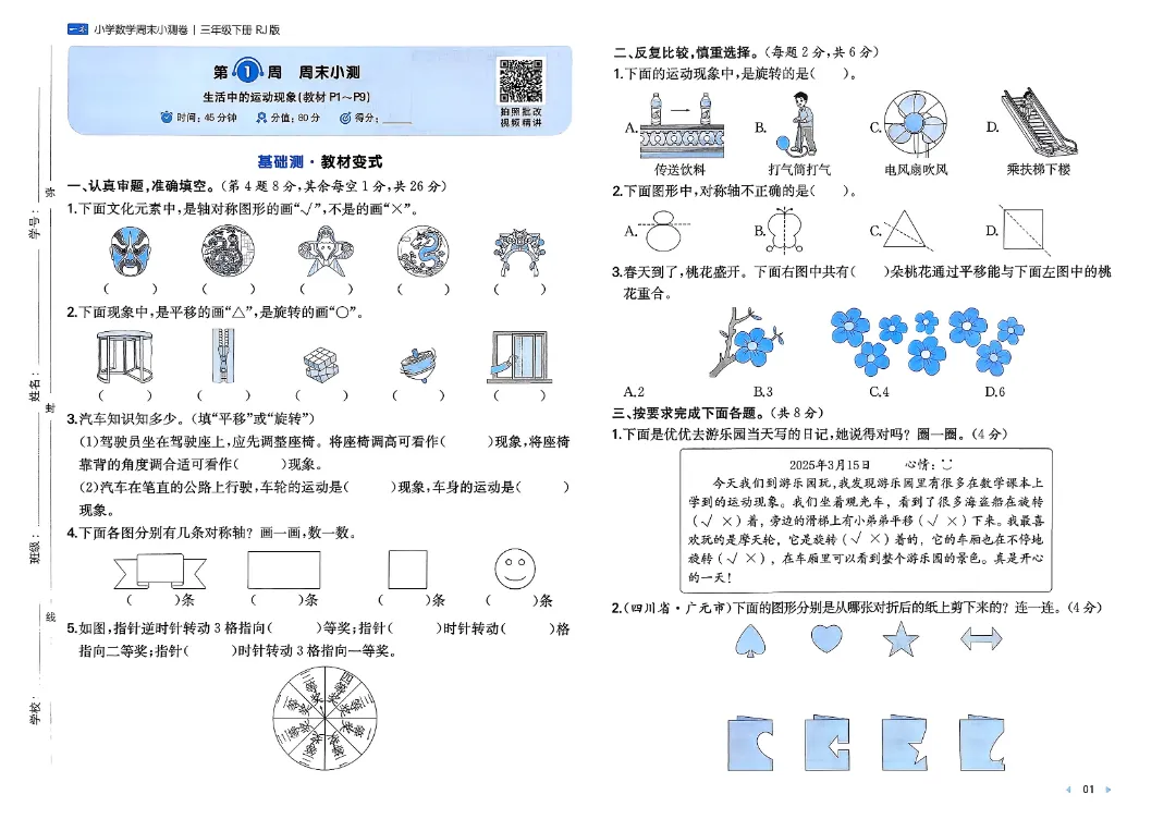 ⏩3下数学人教周末小测卷.pdf