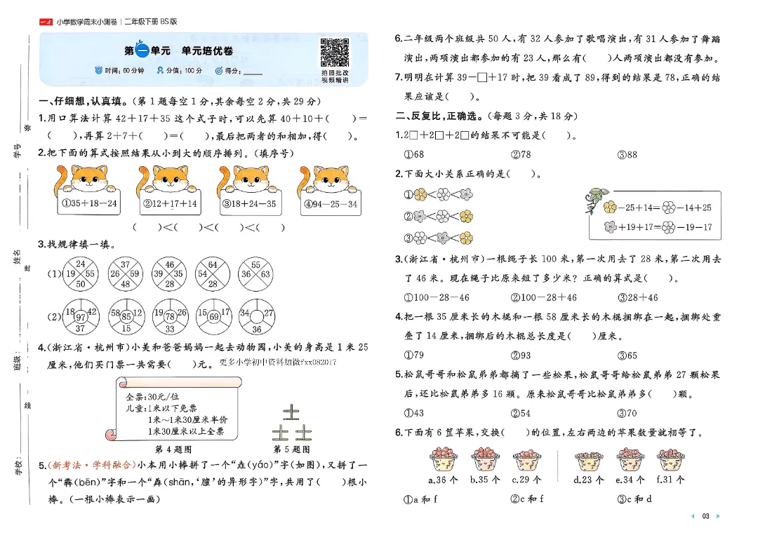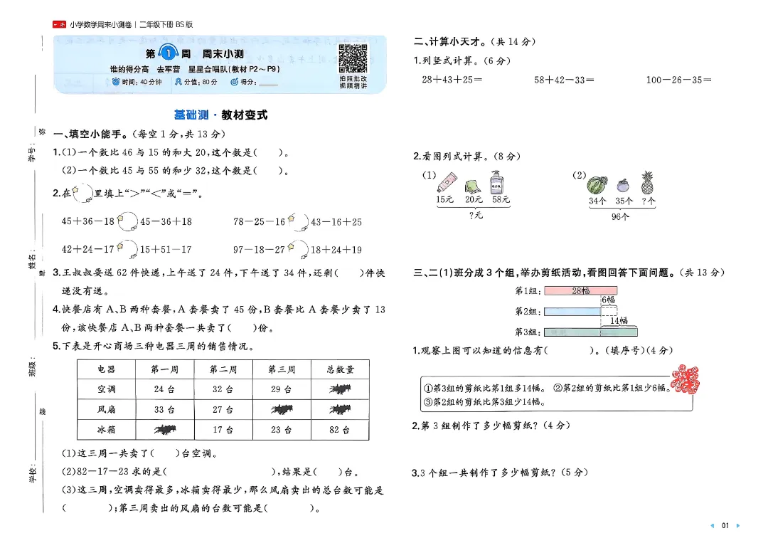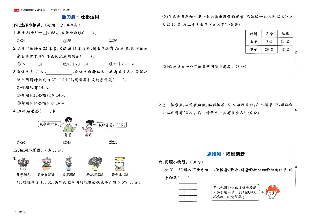 ⏩二下26春数学北师一本周末小测卷.pdf