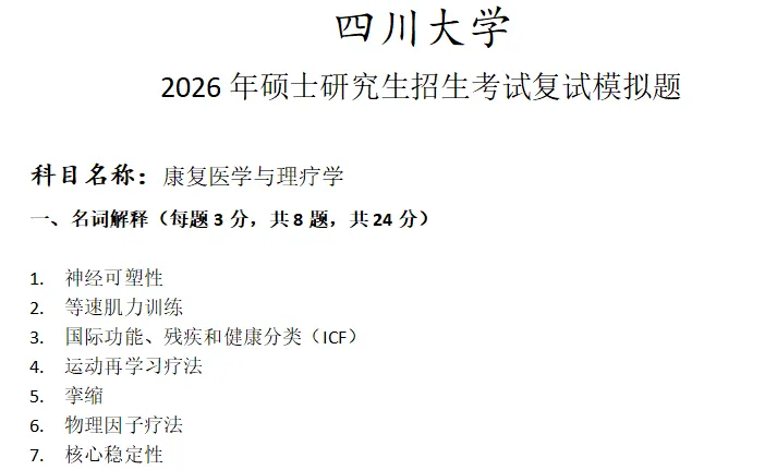 >四川大学康复医学与理疗学考研复试真题模拟