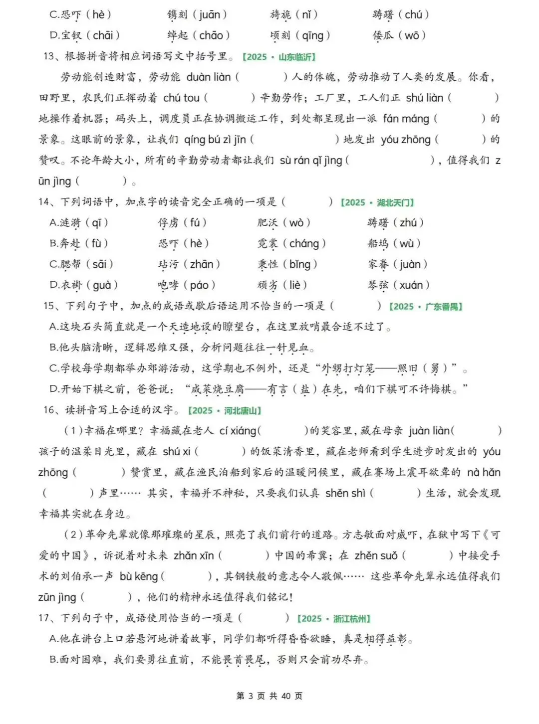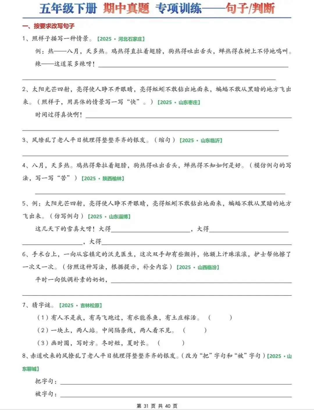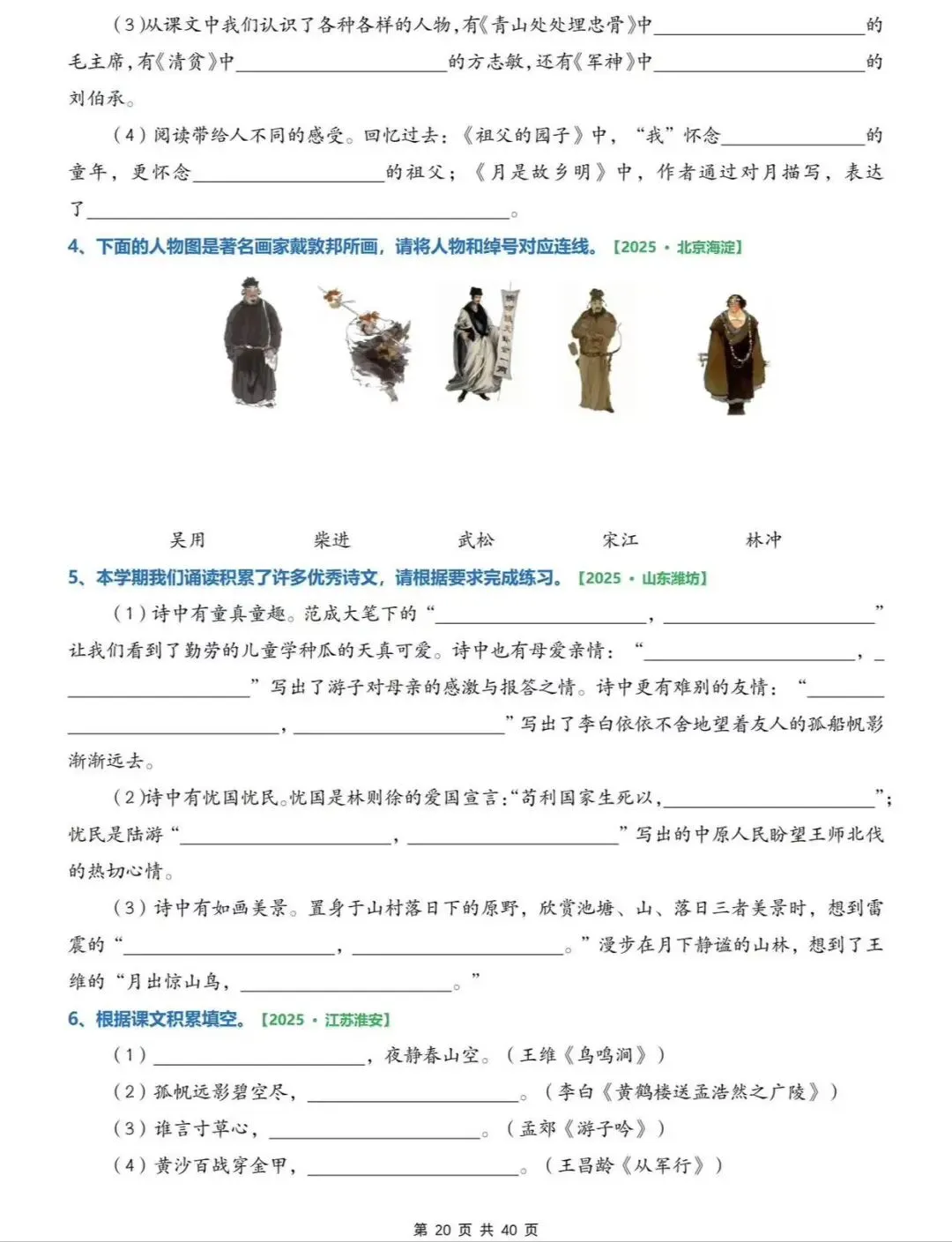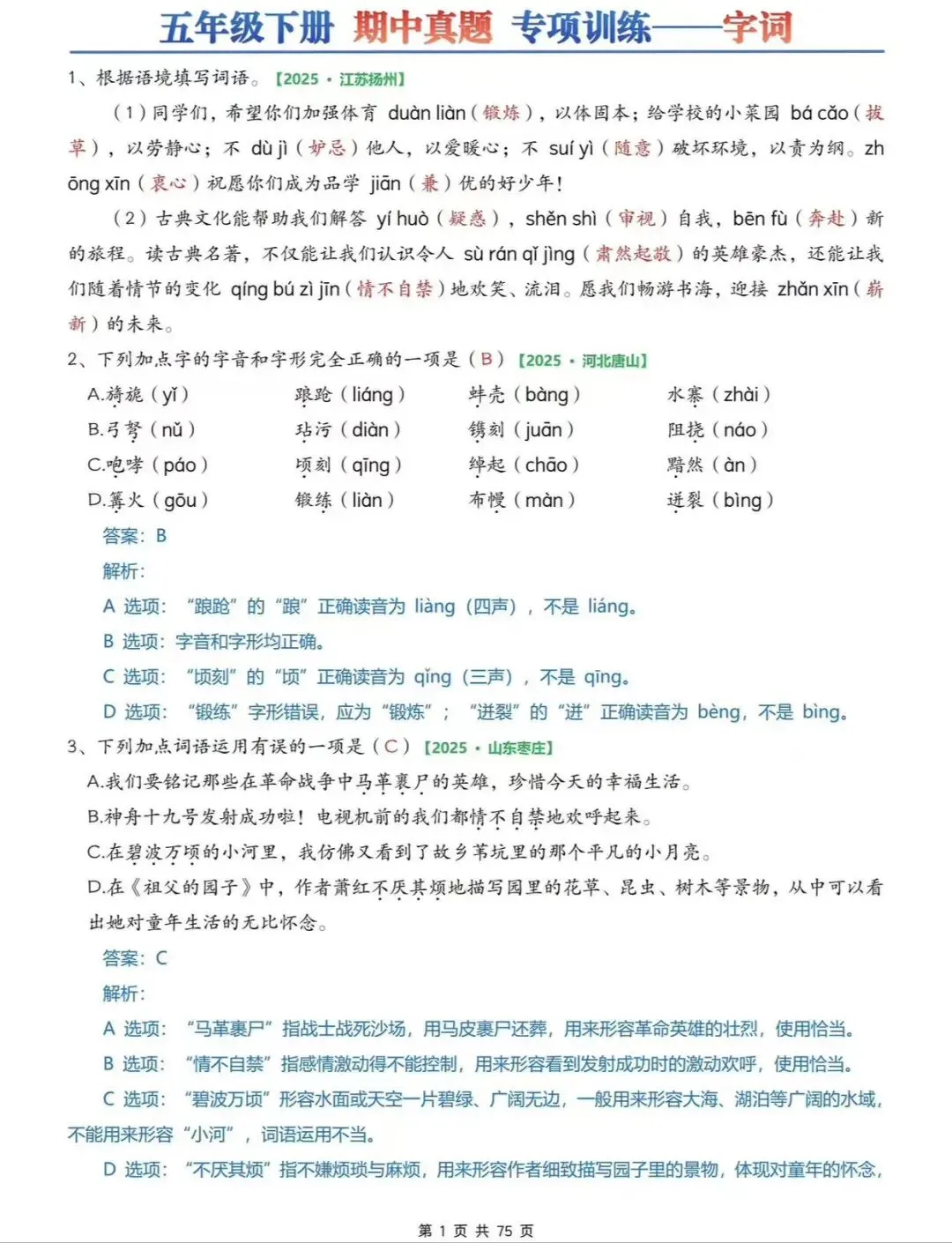 26春五下语文期中6大专项练习(往年考试真题)字词/综合选择/填空/古诗词+名言选择/句子+判断/快乐读书吧专项,可打印