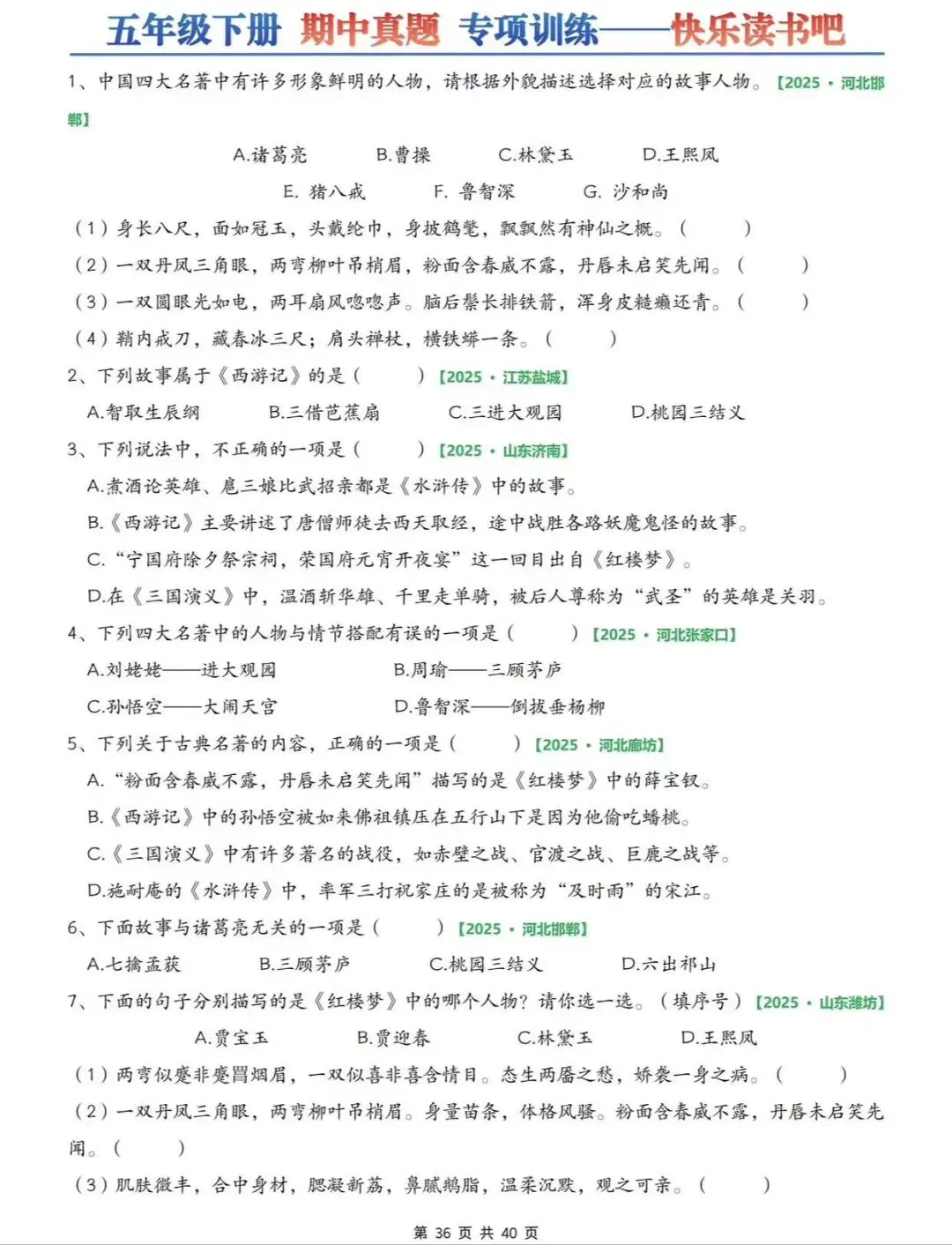 >26春五下语文期中6大专项练习(往年考试真题)字词/综合选择/填空/古诗词+名言选择/句子+判断/快乐读书吧专项,可打印