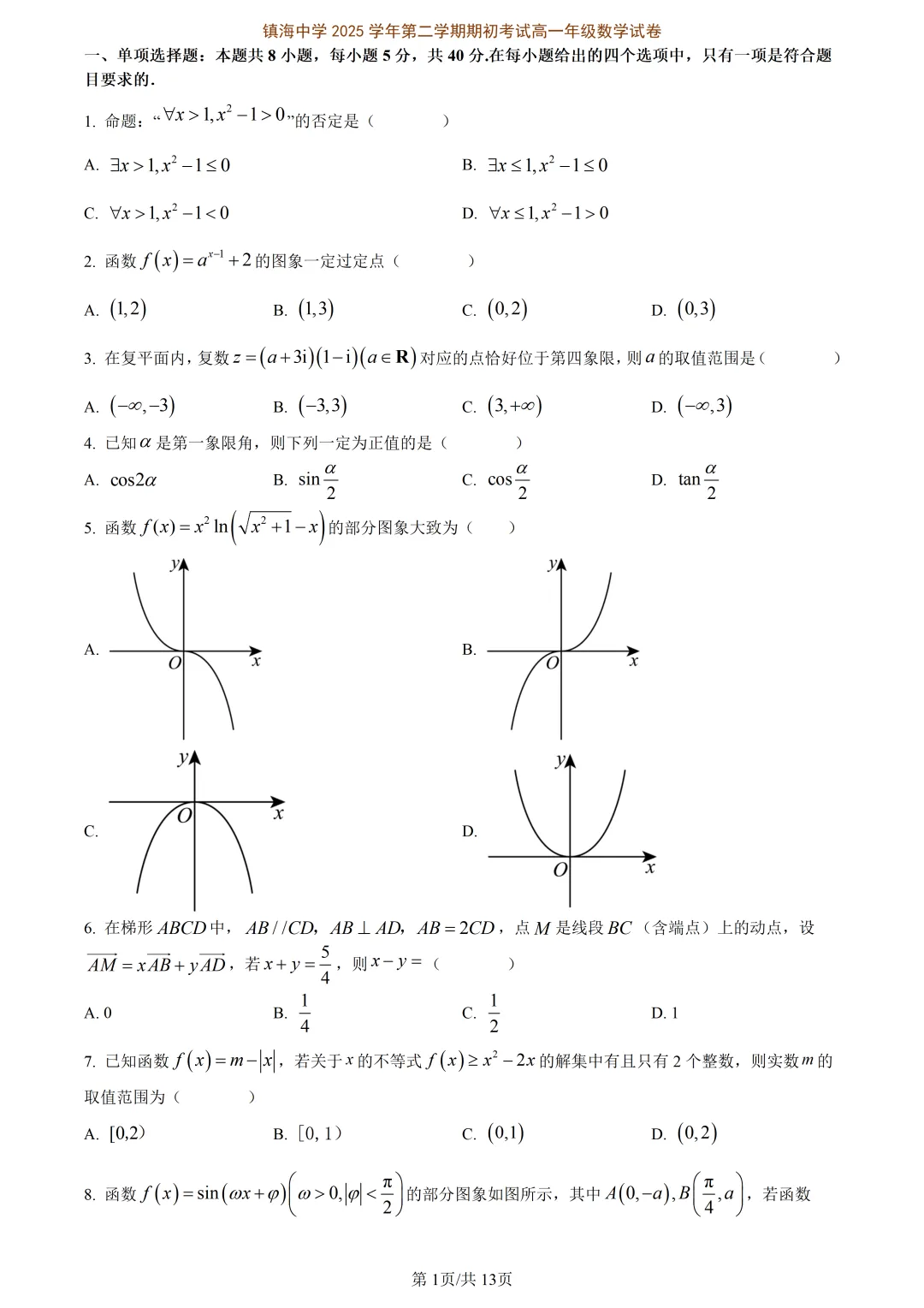 【试卷分享】2025届天域全国名校协作体高三下学期5月联考(数学·含答案与解析)