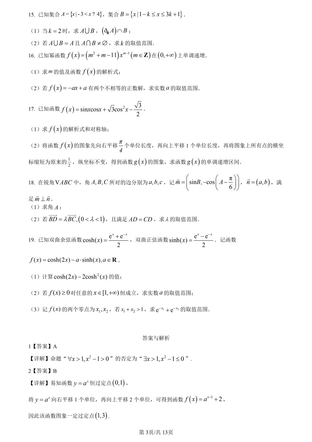 【试卷分享】杭州第二中学高一12月月考【数学·含答案与解析】