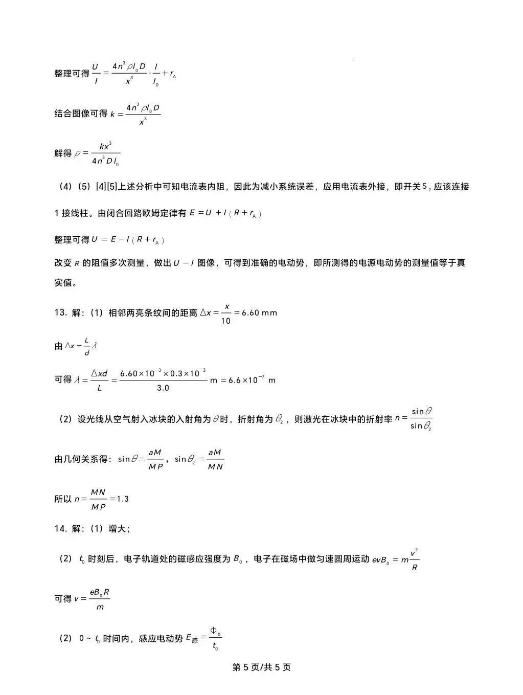 2023届广州市普通高中毕业班综合测试(二)广州二模物理试卷及答案