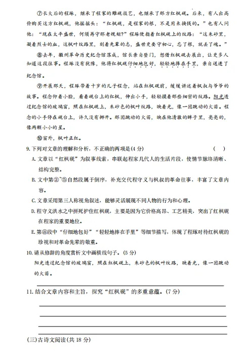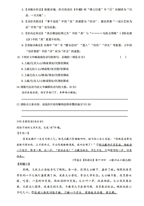 2026北京八一学校初三零模语文试卷及答案