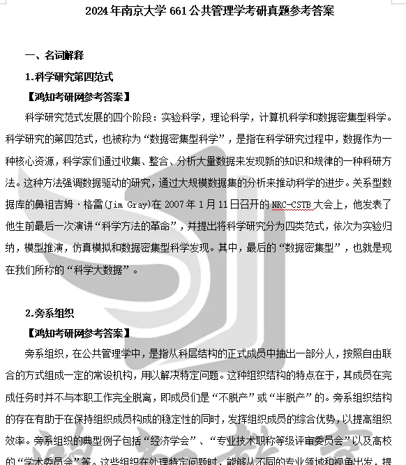 2009-2020,2024年南京大学661公共管理基础考研真题参考答案【24仅名解部分,21-22无答案】