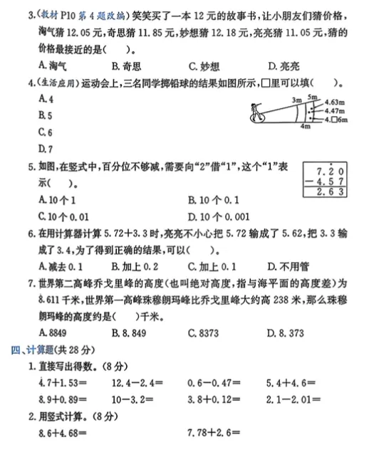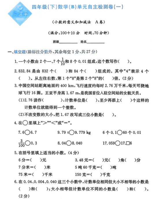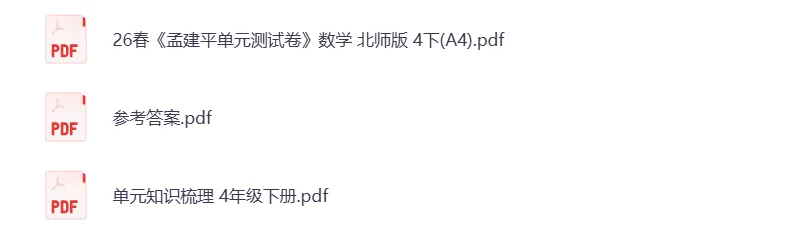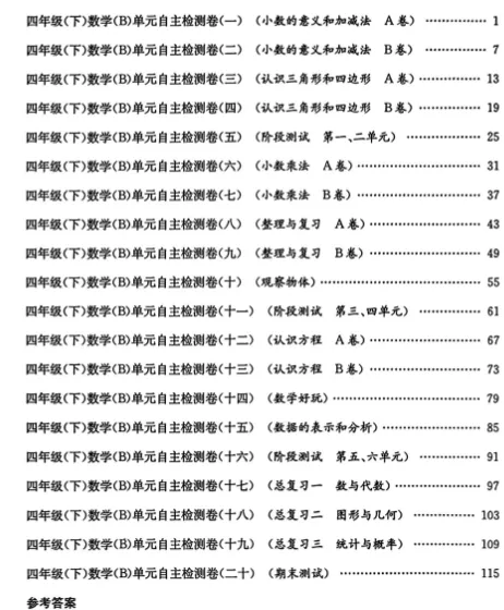 @北师大版数学四年级下册:单元检测试卷AB+期中期末卷+总复习专项检测,全册20套试卷,的下载!