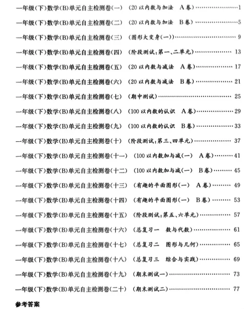 @北师大版数学一年级下册:单元检测试卷AB+期中期末卷+总复习专项检测,全册20套试卷,可打印!大家可以保存预览电子版,选择参考使用~