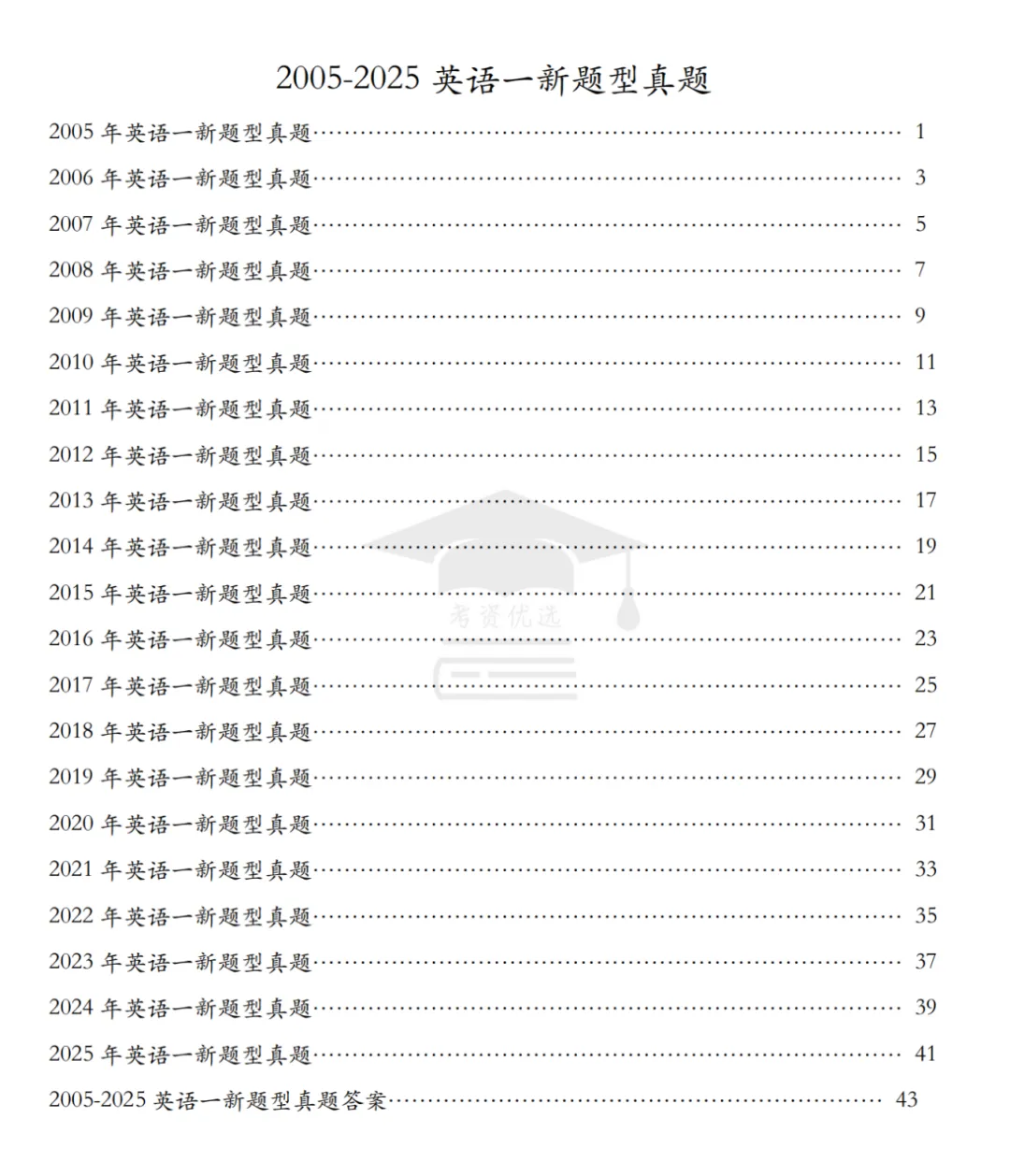 2026考研倒计时!英语一新题型真题合集(2005-2025高清PDF版)