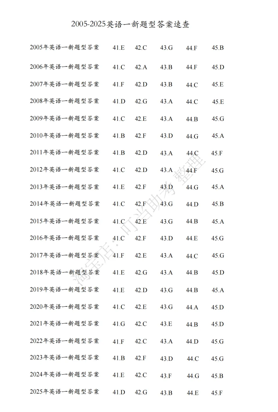 为助你攻克这一重点题型,我们整理了 《2005-2025考研英语一新题型真题与答案精编》 ,完整收录近21年所有新题型真题及详解,专为系统提分而生。