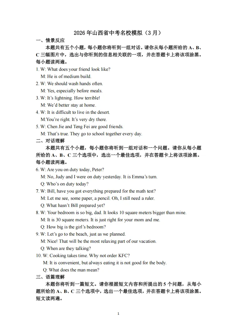 2026年山西省中考名校模拟 3月 英语听力.mp3