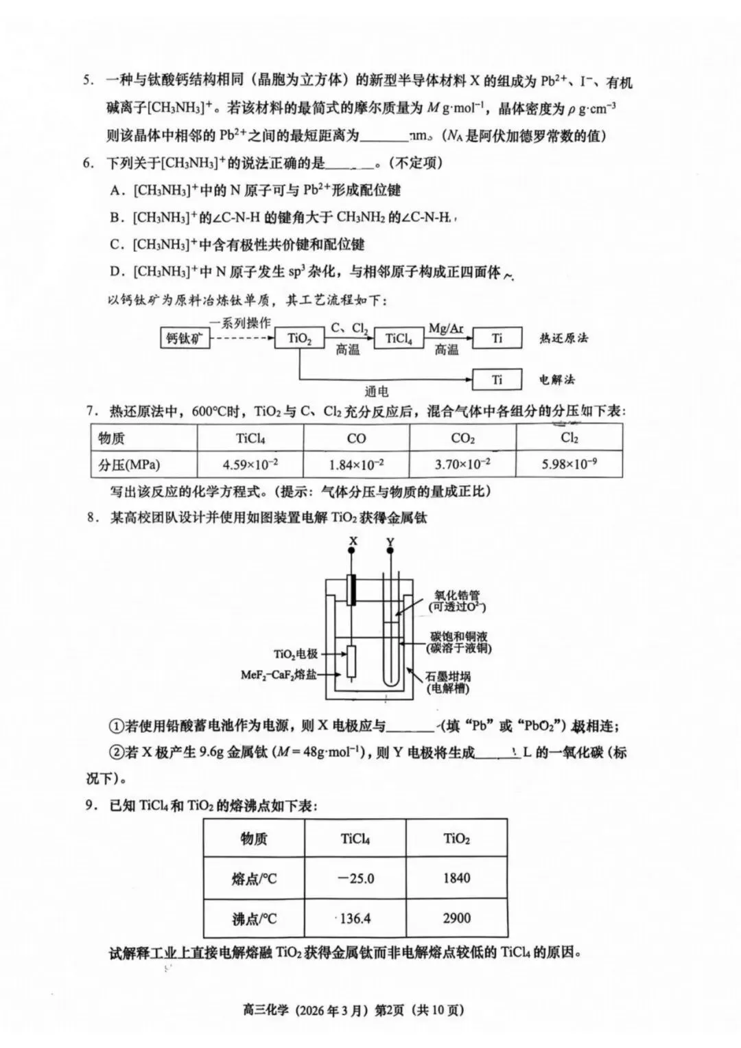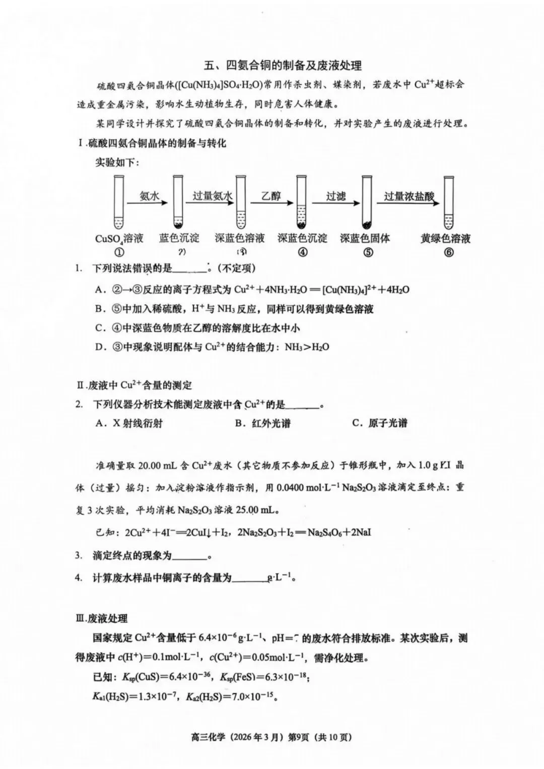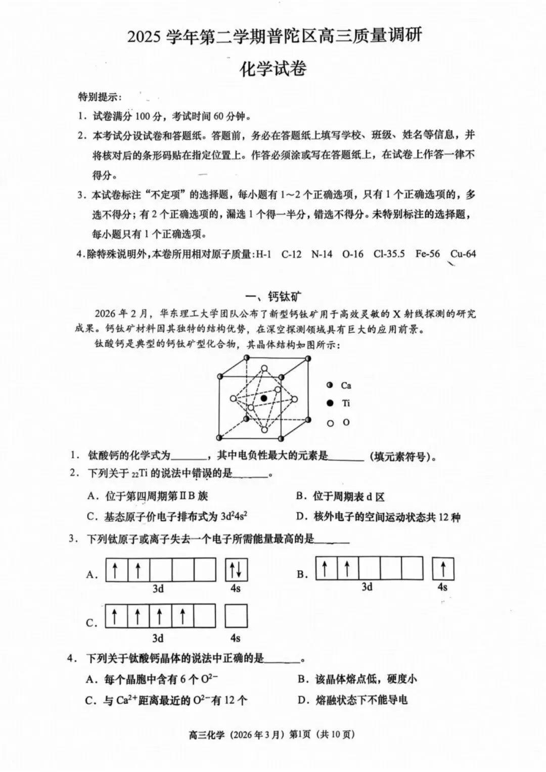 作者寄语:2026届上海普陀区高三二模化学试卷+答案