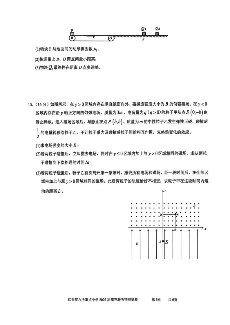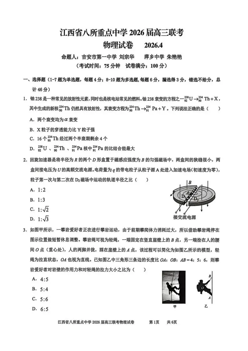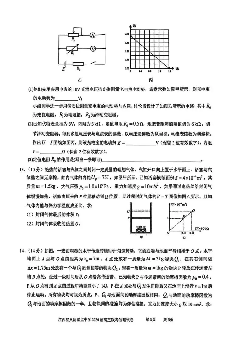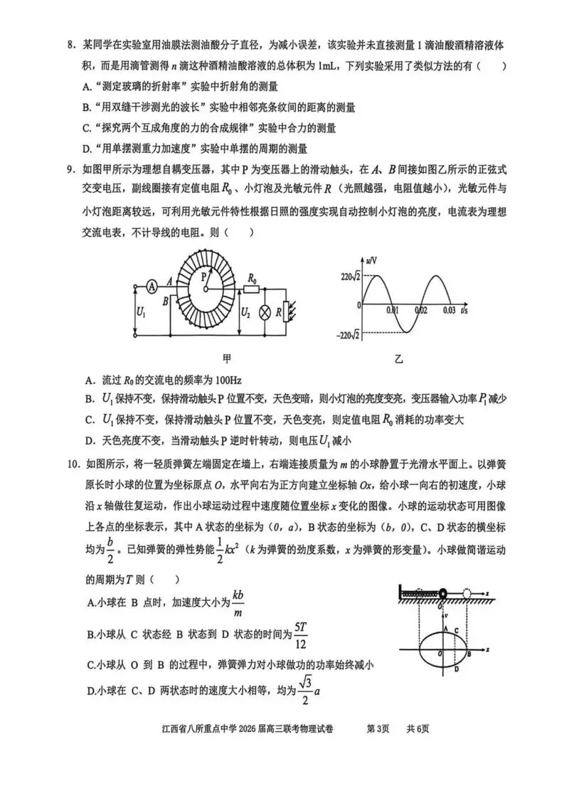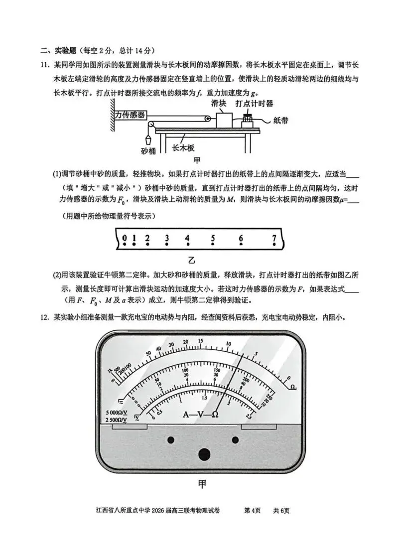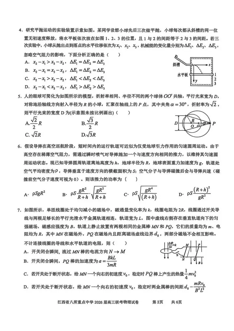 >【高一、高二、高三最新月考试卷】2026届江西省八所重点中学高三下学期4月联考物理+答案