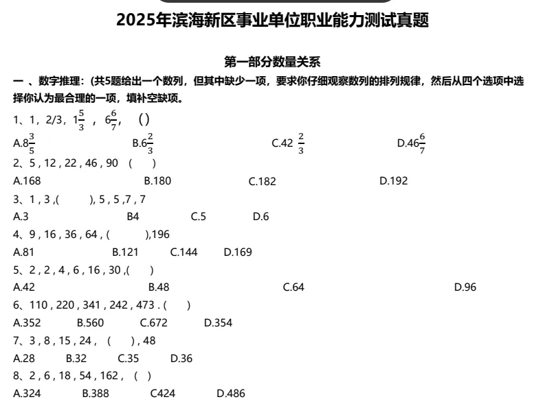 2025年天津市滨海新区事业单位职业能力测试答案.pdf