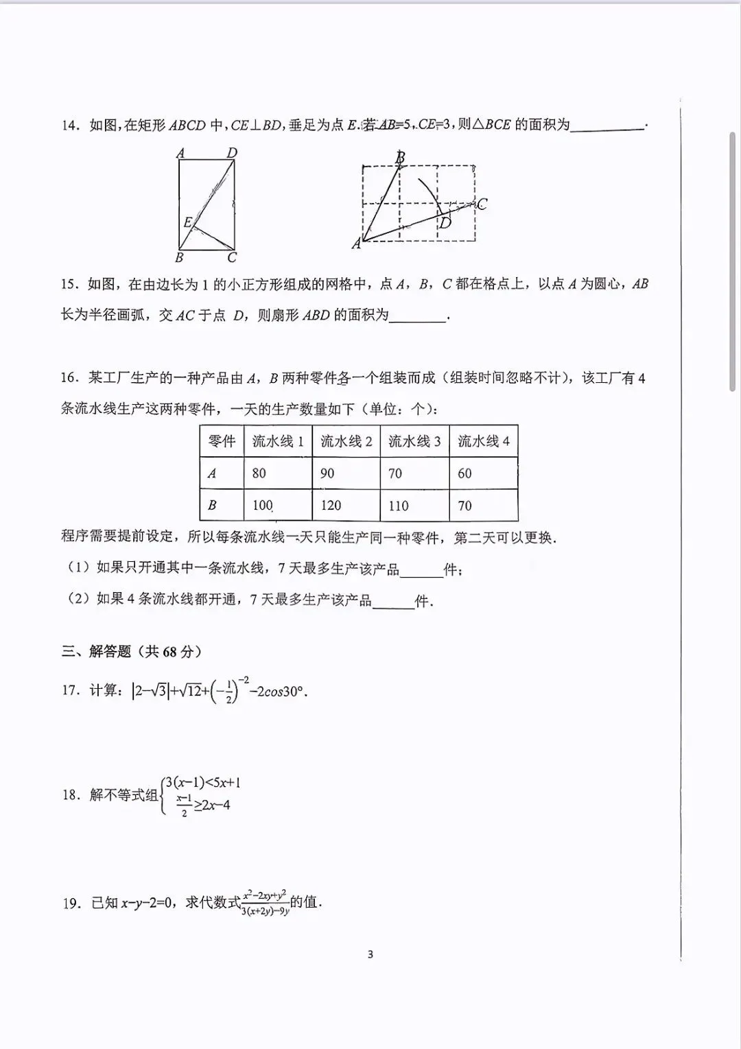 >十一分初三数学零模试卷