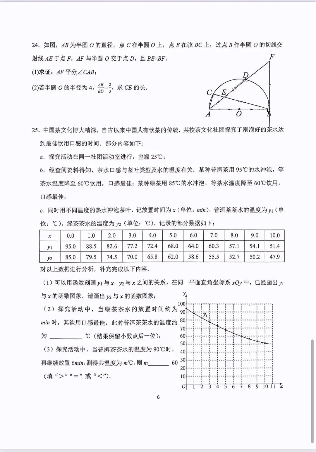 26届长沙市第一中学初三一模数学试卷及答案