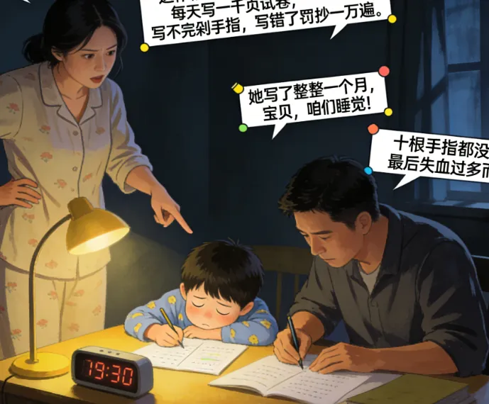 小家伙嘟囔了一句:「妈妈,明天还要写十页吗?」