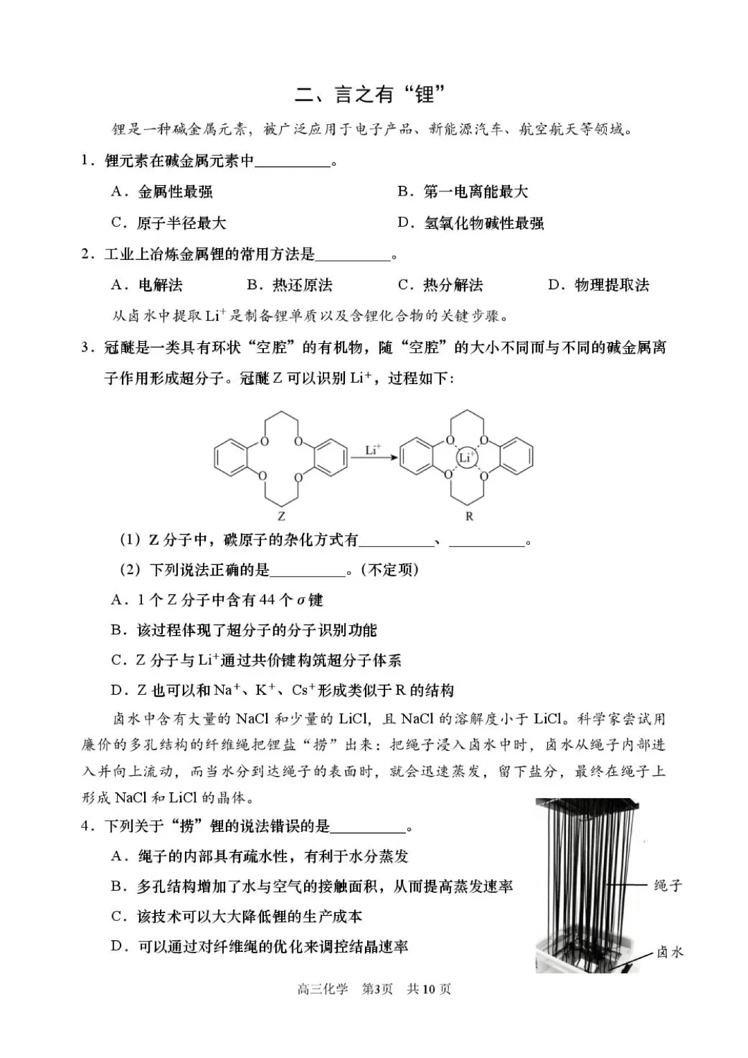 浦东高三二模化学试卷预览