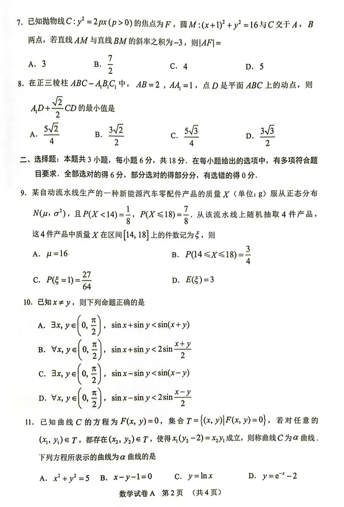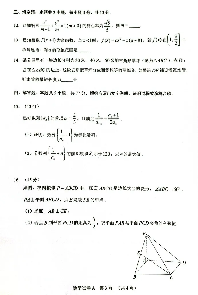 【试卷+答案】2026年3月苏北七市二模—高三数学