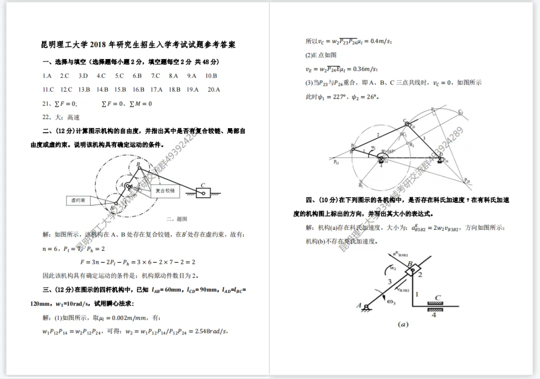 >【考研真题】昆明理工大学(811机械原理)2018年考研真题公布