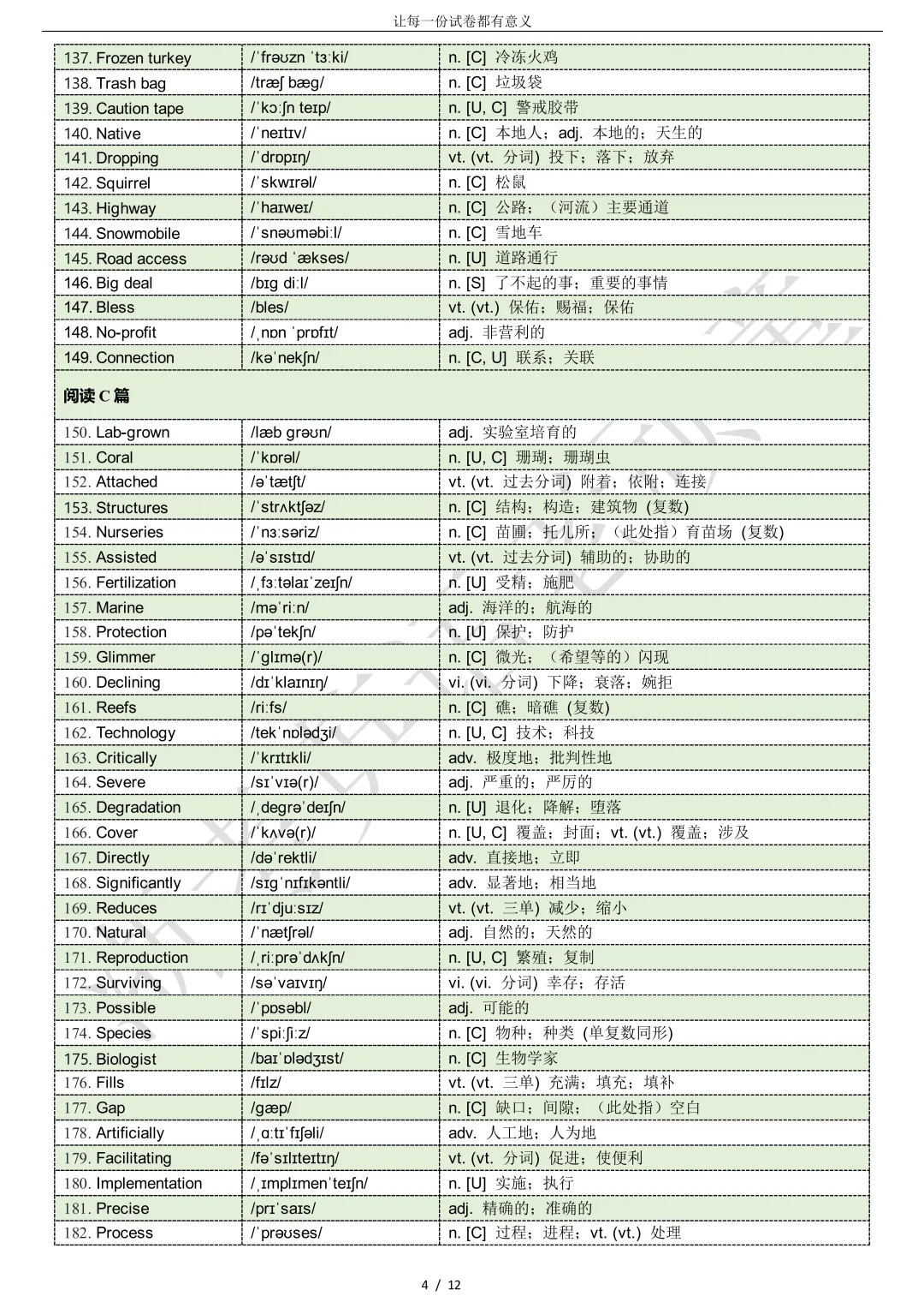 老顽童认为,每一份试卷词汇的学习都是对于3500的重点词汇的一次乱序检测和复习。建议考前复习10份左右的试卷词汇。