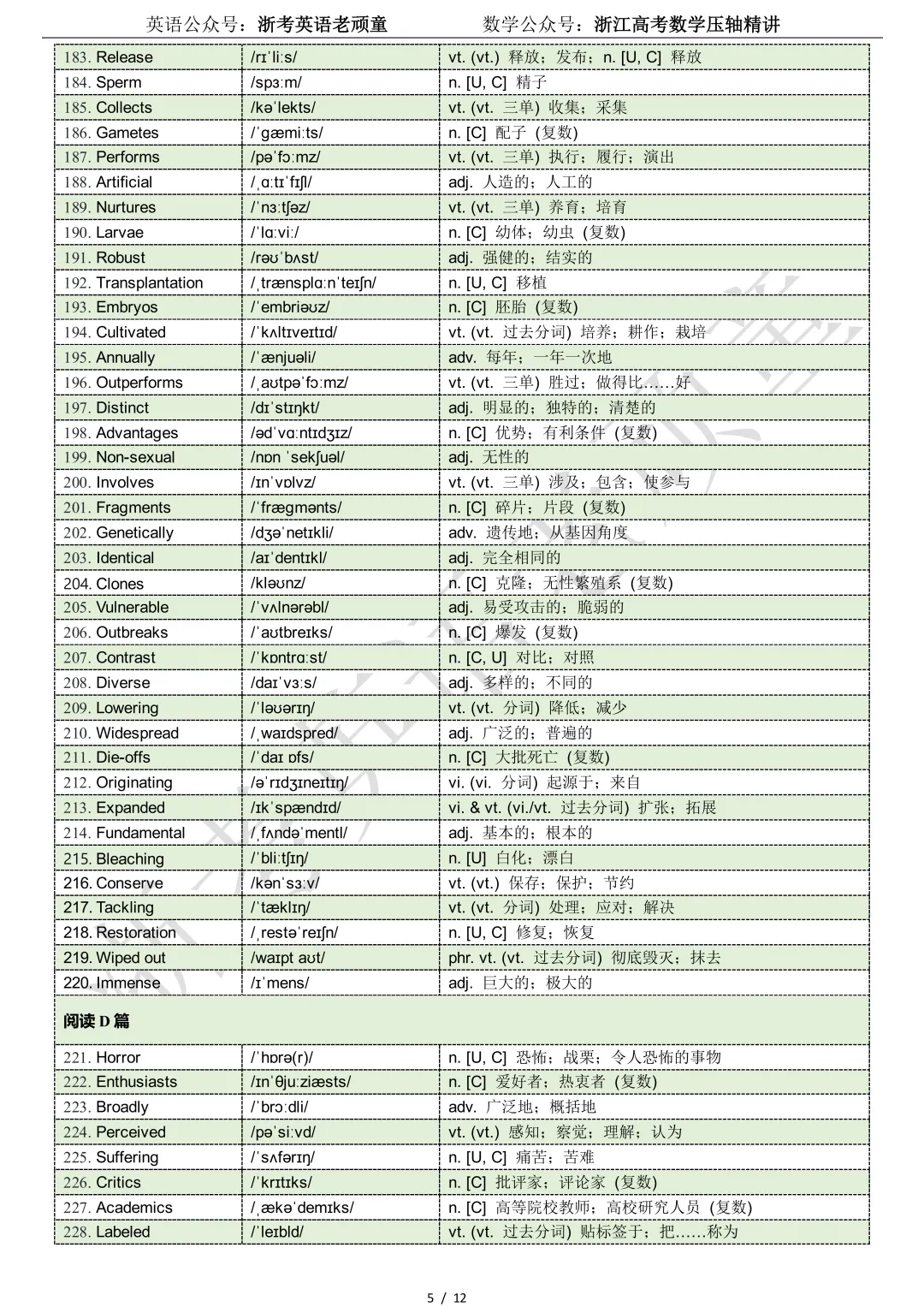本公众号试卷词汇总结均由“浙考英语老顽童”亲自精挑细选、逐字编辑,本是为内部学员所用,但是老顽童老师认为既然做了这些资料,不如用公众号记录下来,并无偿分享给所需要的学生。