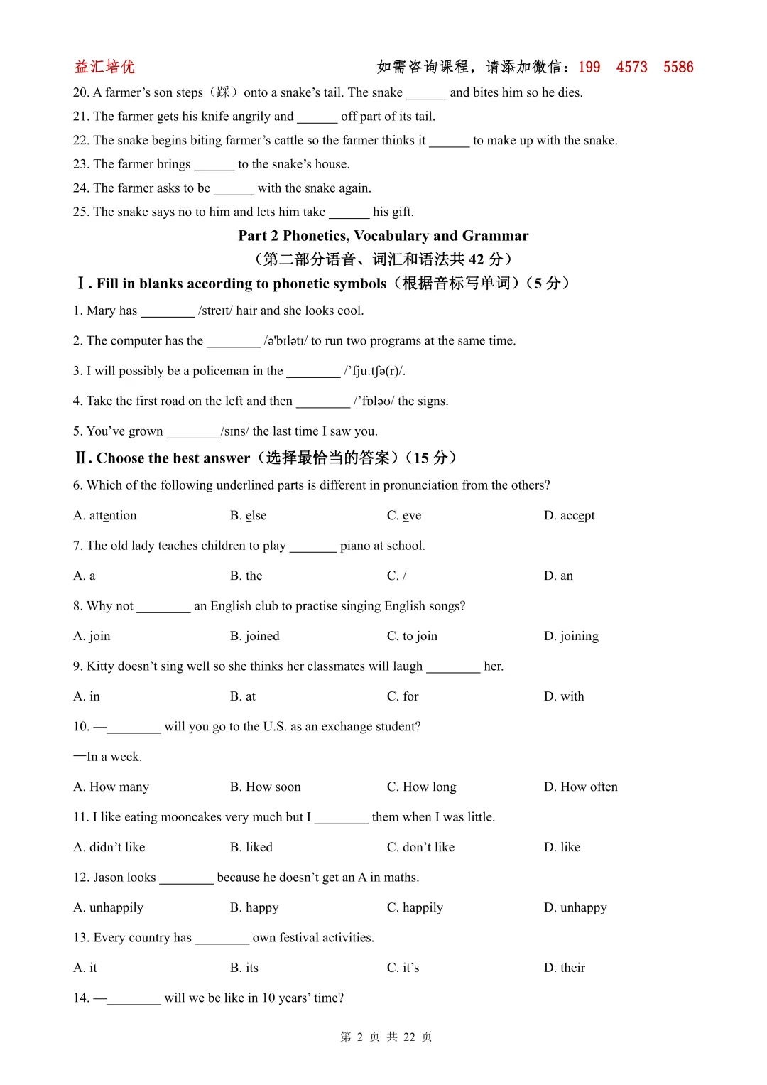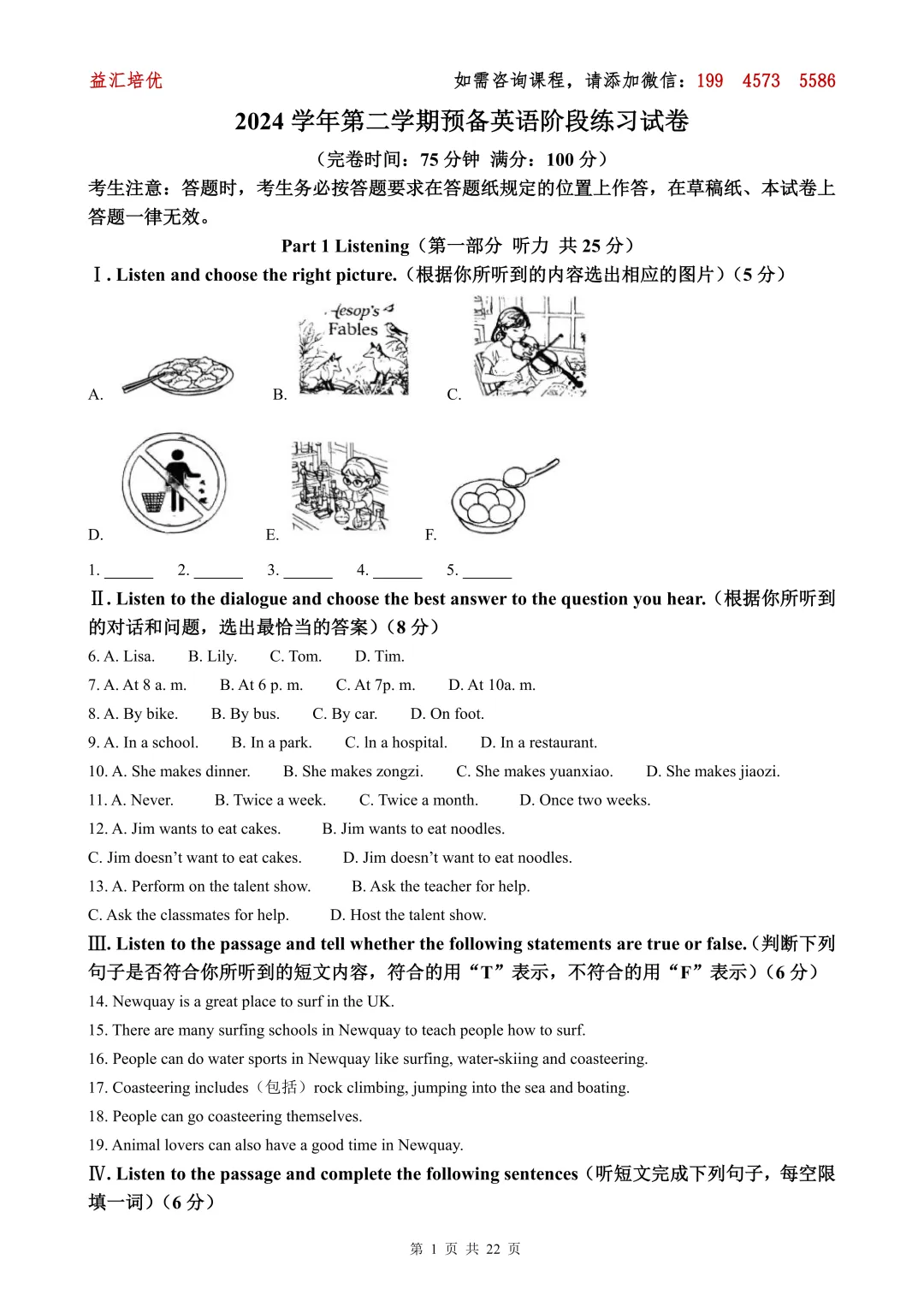 想要完整PDF试卷及答案的小伙伴们,可添加老师微信:193 5217 8593,备注:年级+资料,进群每天无门槛获取学习资料及升学资讯。