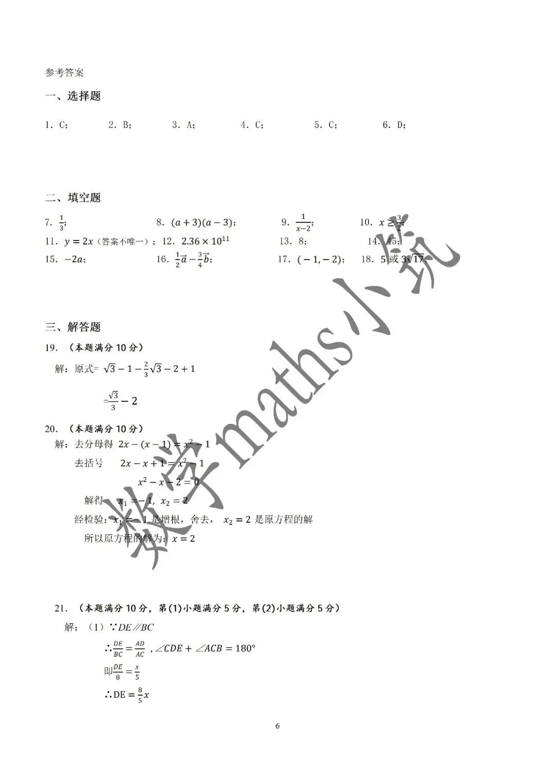 【浙江26一模考】杭州最新中考一模试卷+答案,无水印